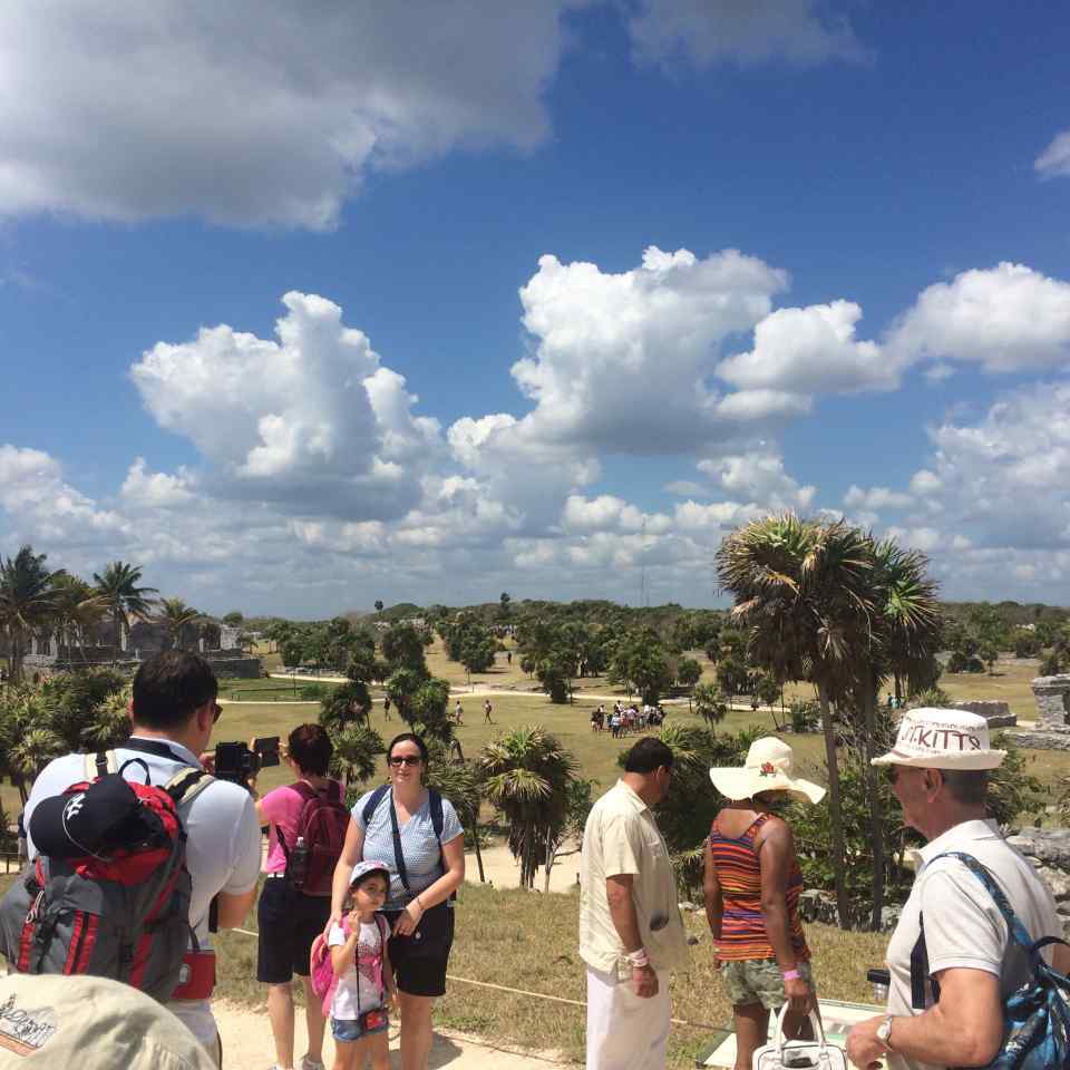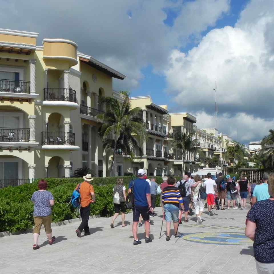 Wir sind auf der Insel Cozumel an der Küste von Mexiko angekommen. Heute Morgen wollen wir einen Ganztagesausflug in eine alte Maya Stadt bei Tulum machen, das heißt aufstehen schon vor 7:00 und schnell zum Frühstücken ins Atlantik-Restaurant. Um 8:45 ist Treffen vor dem Theater, hier müssen wir noch die Buskarten für den Ausflug abholen, wir haben die Busnummer 13 bekommen. Über das gesamte Deck 4 geht es zurück bis zum Treppenhaus B, hier die Treppen hinunter bis auf Deck 2 wo sich der Ausgang des Schiffs incl. der Sicherheitskontrolle befindet.
