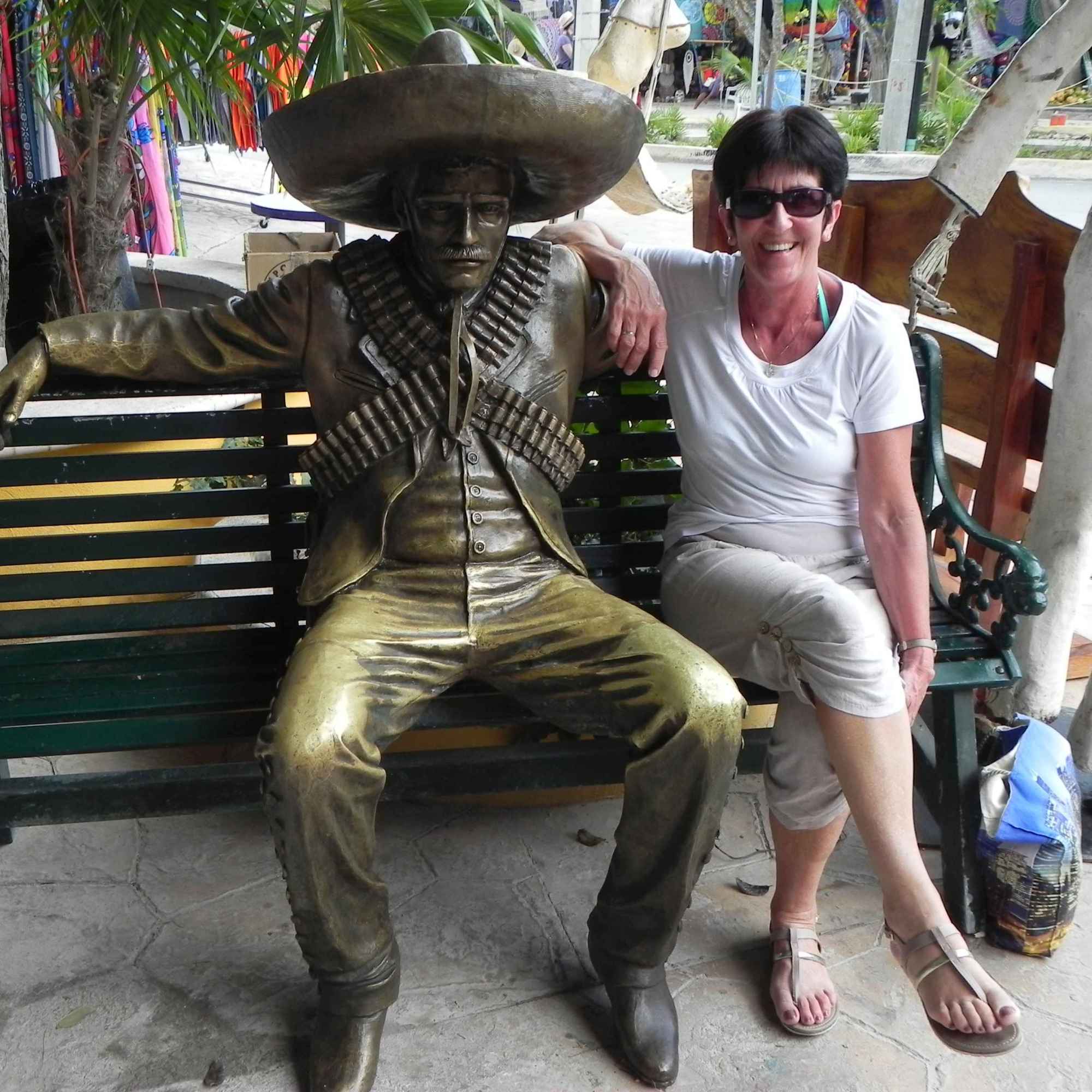 Auf der Pier von Playa del Carmen treffen wir unseren Reiseleiter für heute, es ist ein junger Holländer knapp unter 30 Jahren der zur Zeit in Mexiko lebt. Er spricht ein ganz interessantes Deutsch. Vom Fähranleger aus gibt die Stadt Playa del Carmen ein tolles Bild mit ihren Klassischen alten Häusern, die Stadt soll auch einen wunderbaren Strand besitzen. Mit dem jungen Holländer gehen wir gemeinsam zu unserem heutigen Bus mit der Nummer 13. Die Fahrt bis nach Tulum dauert etwa 1 Stunde bis wir den Busparkplatz der Maya Ruinen-Stadt erreichen.