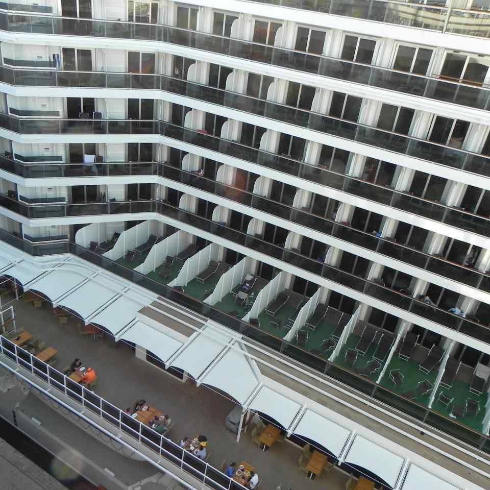 Wir haben heute einen Seetag es wäre Zeit zum länger schlafen, aber um etwa 7:30 stehen wir dann doch auf um zum Frühstücken in das Atlantik-Restaurant zu gehen. So gegen dreiviertel Neun sind wir dann wieder in der Kabine zurück, um unsere Morgentoilette zu beenden. Im Anschluss machen wir heute mal einen Spaziergang übers Schiff. Das Einkaufszentrum des Schiffes, den neuen Wall und auf die Aussen-promenade auf Deck 5. Wir gehen dann weiter zum Heck wo es weitere schöne Bars und Restaurants gibt. Vorbei am Surf & Turf Steakhouse in die Diamant-Bar, die große Freiheit und das Schmankerl wo deftige Kost angeboten wird. Hier die Treppe hinunter auf Deck 4 und man befindet sich im Hanami – By Tim Raue wo Asiatisches Essen angeboten wird. Aber hier in diesen Bars und Restaurants muß für das Essen und auch Trinken extra bezahlt werden.