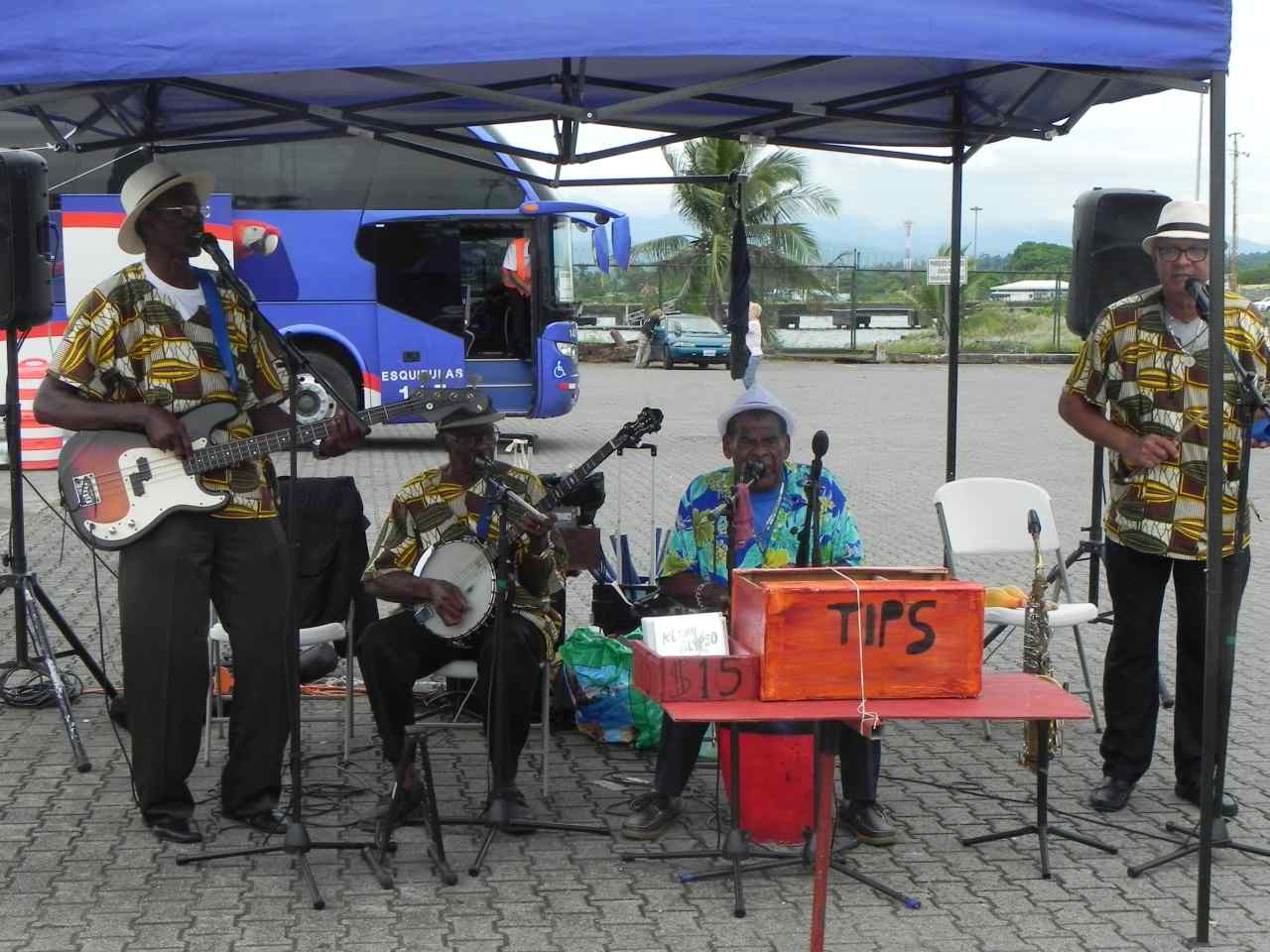 Wir steigen also in größere überdachte Boote ein und fahren den Fluß aufwärts, tatsächlich sehen wir Ibisse, sonstige verschiedene Vögel sowie ein Krokodil. Leider kann man nur den Kopf des Reptils erkennen. Später sehen wir einen wunderschönen Leguan, er ist grasgrün und hat am Rücken einen großen Kamm. Er sitzt unbeweglich auf einem Ast und schaut uns an, seine Ähnlichkeit mit einem Drachen aus einer Fabelwelt ist frappierend. Die Botanik hier am Fluß im Urwald von Costa Rica ist sehr schön, hohe Bäume auf denen die Affen turnen und Faultiere an den Ästen hängen. Direkt am Ufer stehen auch einige Hütten sie sind ziemlich ungeflegt, es ist einfach eine andere Welt hier in Mittelamerika. Wie schon gesagt, die Fahrt ist nach 1,5 Stunden vorbei und wir kehren zur Basisstation zurück, hier bekommen wir auf Wunsch einen Becher Bier oder einen Fruchtsaft. Ebenso werden uns auf großen Tellern schmackhafte Ananas-Scheiben und Bananen angeboten. Hier erkennen wir, wie gut frisches Obst schmecken kann. Zum Abschluß finden wir noch einen wunderschönen Magneten für zu Hause. Ein Tukan im Urwald der ein Paddel im Flügel hält, da Tukane angeblich Spassvögel sein sollen, würde das gut passen. In der großen Halle kann ich noch vier wunder-schöne geschnitzte Masken fotografieren. Gegen 12:00 ist unser Ausflug dann zu Ende und wir kehren zum Schiff zurück. Hier erwarten uns noch 4 einheimische Musiker die an der Pier stehen, und uns Musikalisch verabschieden. Am Nachmittag gehen wir wieder auf`s Pooldeck, das Wetter ist wieder besser geworden und wir können uns an den Pool legen und die leichte Sonne genießen. Zum Abendessen gehen wir heute ins Gosch-Sylt zum Fischessen. Wir bestellen einen Grillteller bestehend aus Scholle, Rotbarsch, Lachs und Steinbeißerfilet dazu Röst-kartoffel und einen guten Rotwein. Das Essen hier im Gosch-Sylt ist für mich nicht ganz überzeugend. Im Anschluß gehen wir noch in das Ankelmann-Restaurant um ein Dessert zu essen.