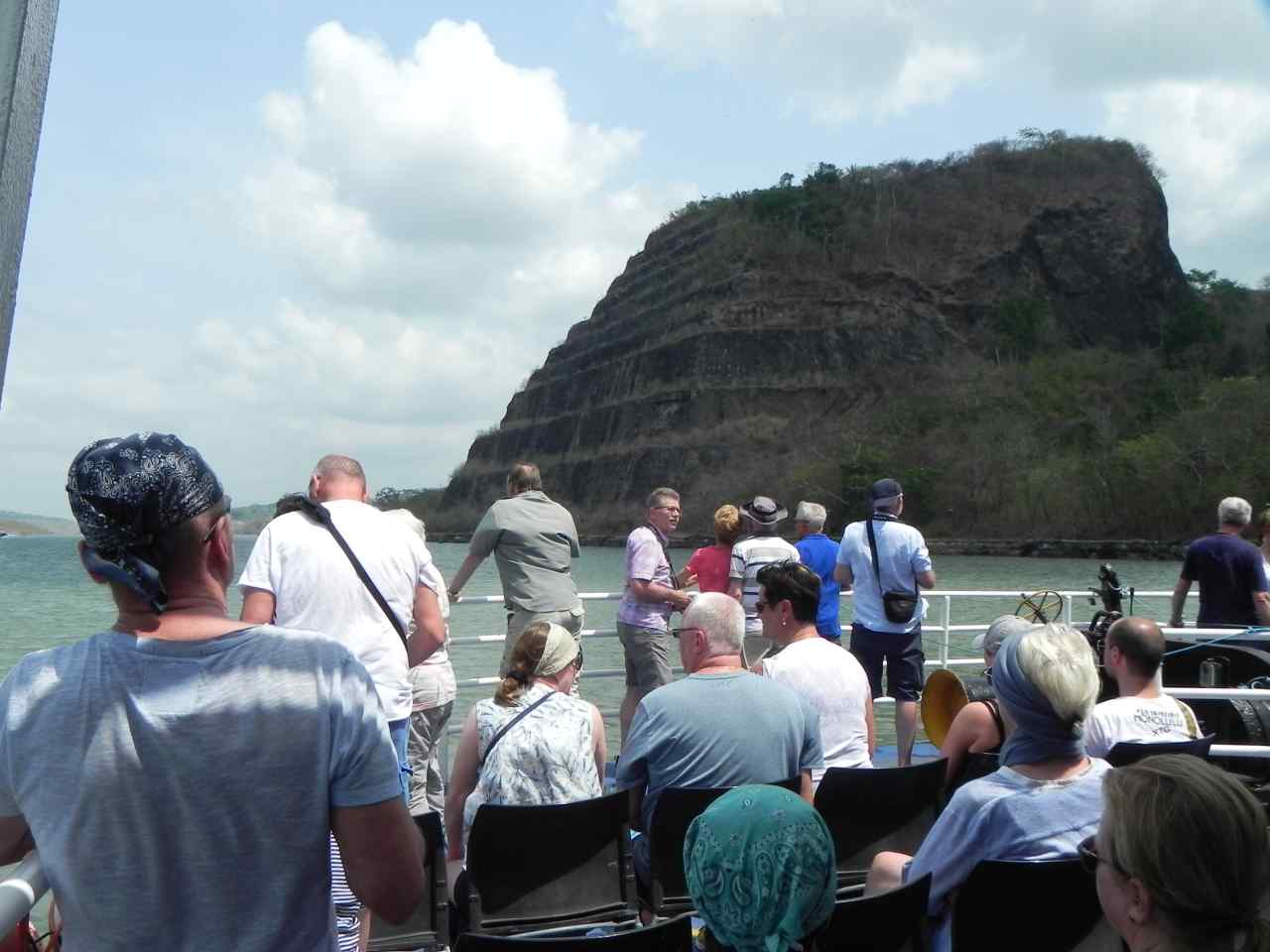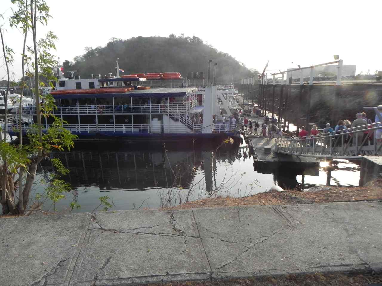 Es geht durch das morgendliche Colon, es ist jetzt kurz nach 6:00, uns begegnen reihenweise Schulkinder in ihren schönen Schuluniformen. Kaum zu glauben es ist ja noch stockduster hier, und die Sicherheitslage hier in Colon ist nicht allzu gut. Wir fahren weiter über eine Autobahnähnliche Straße in Richtung Panama City. Der Verkehr ist äußerst lebhaft, es gibt hunderte von Autos hier, kaum zu glauben daß wir im armen Mittelamerika sein sollen. Nach etwa eineinhalb Stündiger Fahrt mit unserm rasanten Fahrer der High Speed fährt haben wir die Großstadt mit ihren 1,5 Millionen Einwohnern erreicht. Unser Reiseleiter im Bus sprach nur Englisch, das wohl die meisten Passagiere nicht verstanden. Der Bus fährt noch weiter an der City vorbei bis an den Pazifischen Ozean, wo sich dann der Fährhafen bzw. der Jachthafen befindet. Hier liegen einige Doppelstöckige Fährschiffe für uns bereit, wir sind mit ca. 8 Bussen gekommen. Die Schiffe, wie schon gesagt sind Doppelstöckig und haben bestimmt für über 200 Personen Platz. Wir finden ein nettes Plätzchen zum Sitzen vorne am Bug einer Personenfähre, hier an Bord haben wir jetzt endlich einen Deutsch sprechenden Reiseleiter.