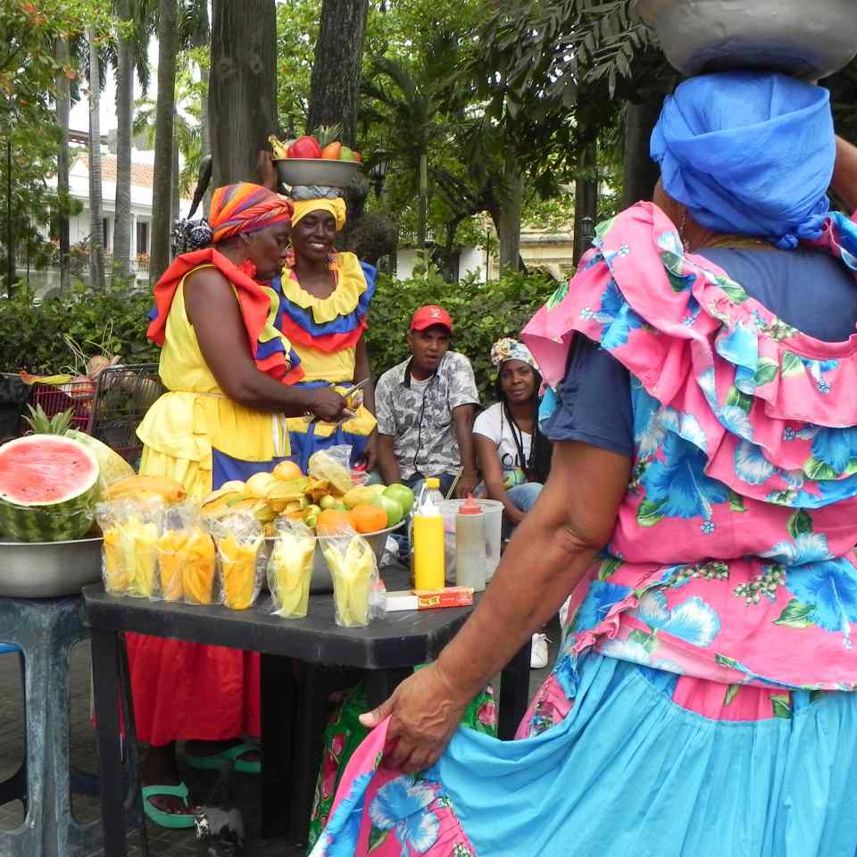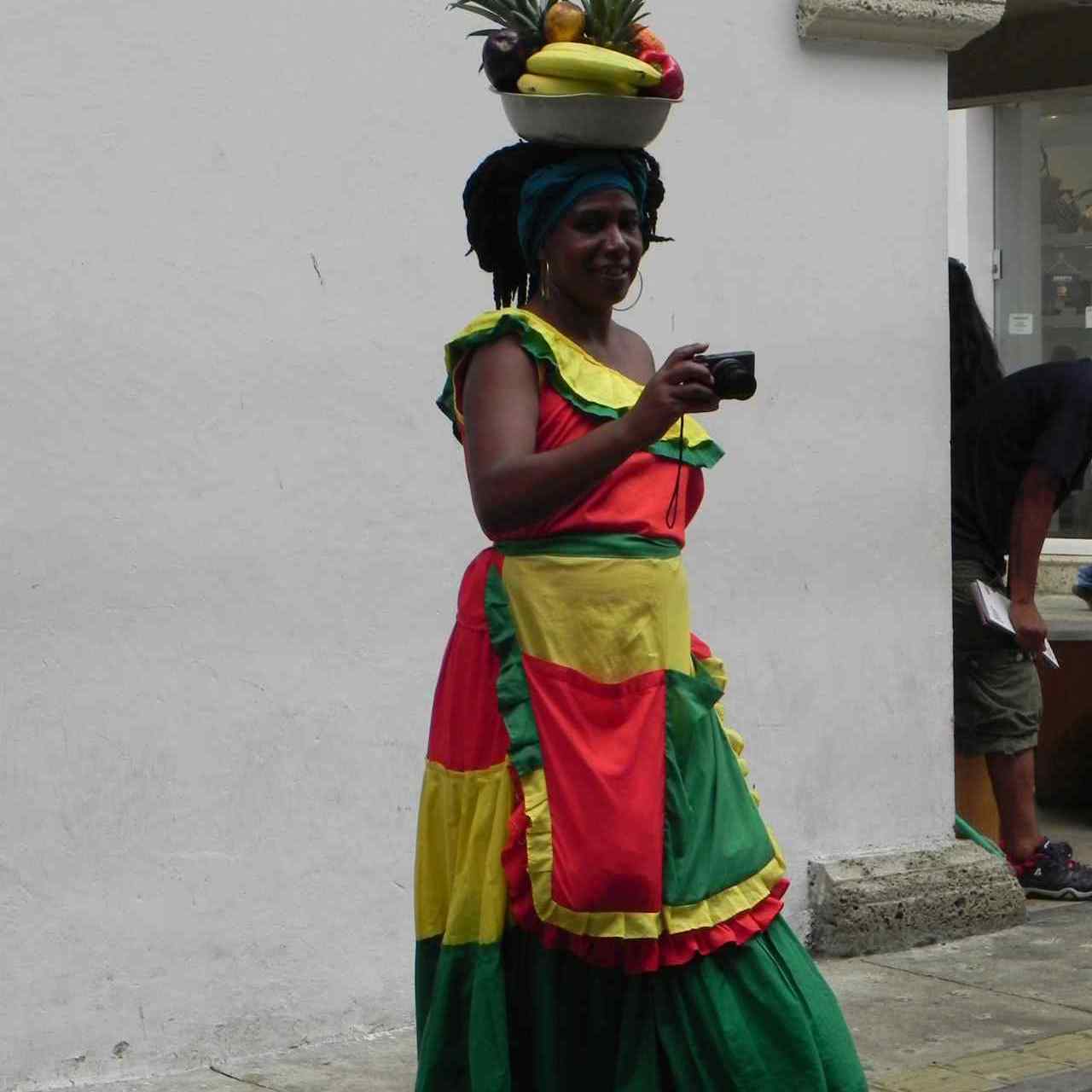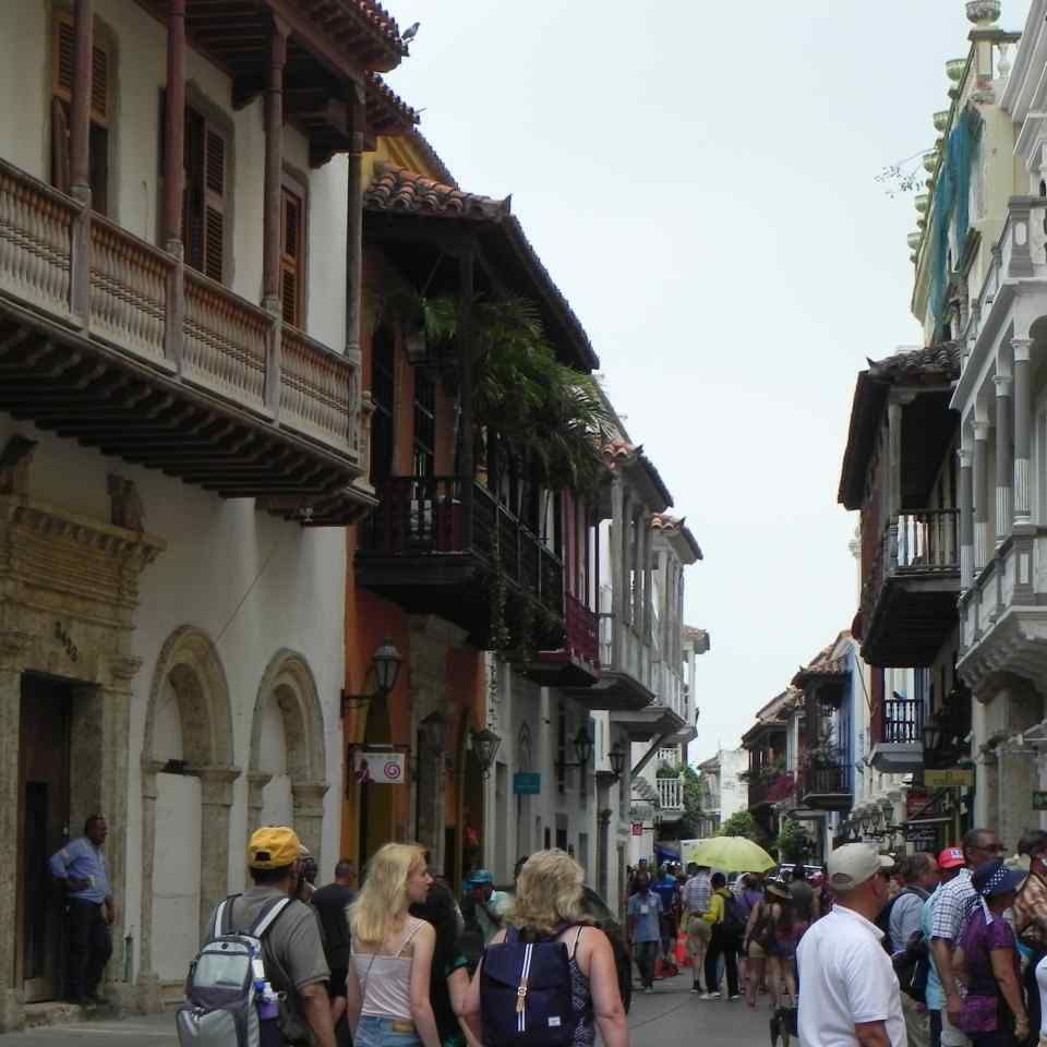 Um 10:15 war Treffpunkt im Theater um unsere Buskarten zu holen, danach ging es gleich nach unten auf Deck 2. Da anscheinend eine große Anzahl von Passagieren das Schiff heute verlassen wollte, mußten wir eine Ehrenrunde drehen, es ging einmal über die Sicherheits-Schleuse zurück in das Treppenhaus. Aus Sicherheitsgründen wollten sie die wartenden Gäste von der Treppe weg haben. Wir haben heute Busnummer 20 bekommen, und dazu eine Reisebegleitung die Spanisch und Englisch spricht, sie plapperte in einem fort, aber leider verstand ich kein Wort davon. So fuhren wir in die Altstadt von Cartagena. Es heißt Cartagena sei eine der schönsten Kolonialstädte Südamerikas, dem kann man voll zustimmen. Die Altstadt mit bunten Häusern und Balkonen, viele Blumen einfach Traumhaft. So spazierten wir 3,5 Std. durch die Gassen. Bei einem jungen Indiomädchen kauften wir einen Magneten für zu Hause, der mir aber gar nicht gefiel. Später in einer anderen Straße trafen wir die Verkäuferin wieder und tauschten den Magneten einfach um. Von einem Straßenverkäufer der einen Stand an der Straße hatte, kauften wir einen Becher mit Zuckersüßen Ananasscheiben, sie schmeckten herrlich. Auch ein T-Shirt mit dem Emblem von Columbia wechselte irgendwann den Besitzer. Den Verkäufer trafen wir immer wieder in den verschiedenen Straßen.