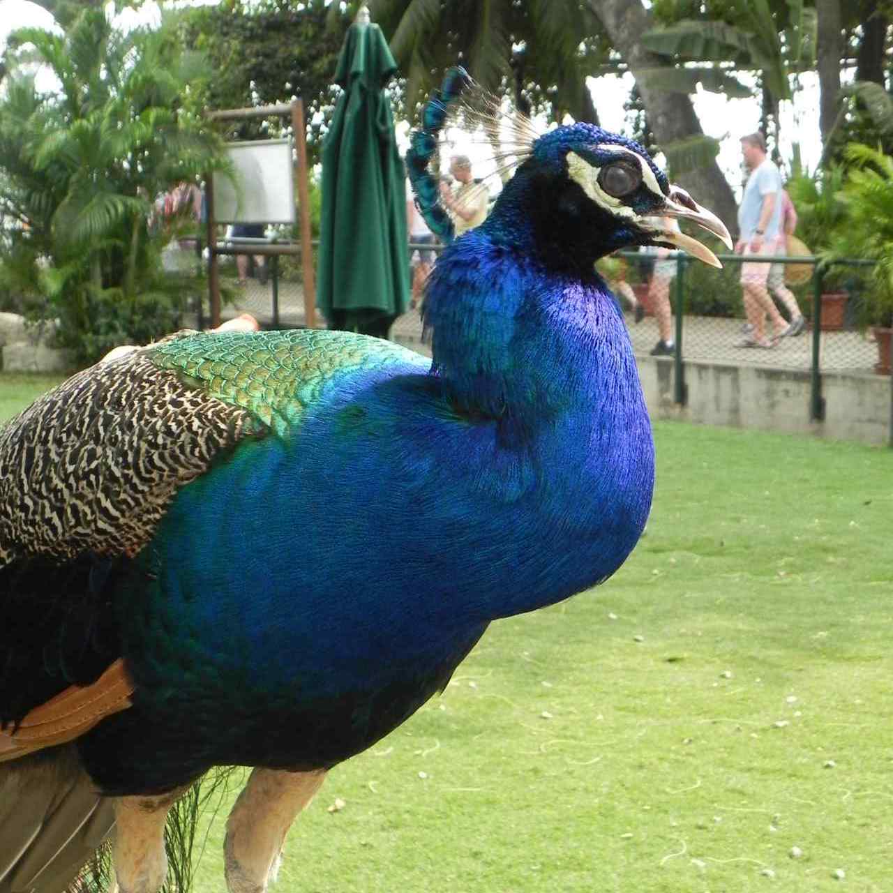 Nahe dem Hafenterminal befindet sich der OASIS Eco Park mit vielen freilaufenden Tieren. Es gibt hier kleine Äffchen, Flamingos, Pfaue, Schildkröten, Aras und kleinere Papageien und sogar einen Tukan. Bei den Aras wo einige auch am Boden herum laufen, gibt es welche die auf „in die Füße von Besuchern beißen“ spezialisiert waren. Auch bei mir versuchte es ein Ara immer wieder mal. Ein Besucher der nicht darauf achtete, wurde von einem der Aras in die Fersen gebissen. Ob es ihm weh getan hat, konnte ich nicht erkennen, aber für uns Zuschauer war es halt nett anzusehen. Als wir weiter gehen, kommen wir an einem kleineren Kreuzfahrtschiff mit dem Namen Freewinds vorbei, dessen Name mir bekannt vorkommt. Erst ein wenig später komme ich darauf was für ein Schiff das ist. Dieses Schiff habe ich schon mehrmals im Hafen von Bridgetown / Barbados gesehen. Es gehört der Scientology Sekte und wird für Seminare der höchsten Führungsebene verwendet. Die Norwegian Bliss hat den Hafen von Cartagena schon kurz nach Mittag wieder verlassen. Wie ich zu Hause recherchierte, war sie auf dem Weg durch den Panamakanal. Ihre neue Route im Sommer 2019 führt von Seattle nach Alaska.