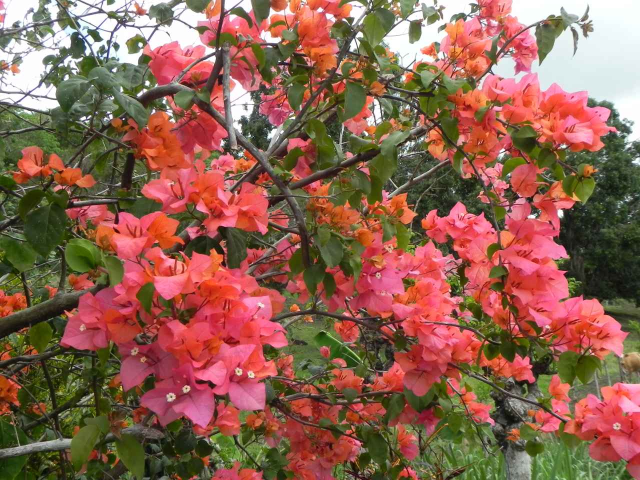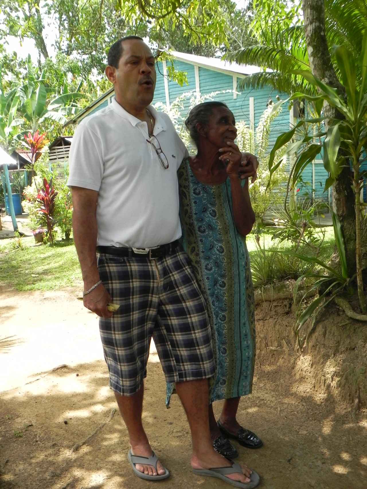 Oben angekommen bekommen wir von den Busfahrern einen Cuba Libre zum Trinken, der sehr süffig ist. Nachdem wir wieder alle komplett sind geht es ein paar Kilmeter weiter zu einer Zuckerrohr-Plantage. Die Plantage hat eine sehr sonnige Lage, als Folge gibt es hier viele wunderschöne Blumen und blühende Sträucher. Unter anderem auch Bougainvilleen die hier in der Dom. Rep. aber anders heißen. Die Wohnhütten sind auch hier einfach gehalten aber das Gelände ist sehr schön. Es gibt hier ein paar Schweine, Hühner und mehrere Ziegen, zum Abschluß bekommen wir ein Stück Zuckerrohr zum Kauen. Er ist sehr saftig und süß. Dann geht es weiter zu Mama Mercedes einer 92 Jährigen Dame die hier mit Ihrer Familie auf einer Kakao und Kaffee-Plantage lebt. Auch hier sind die Wohnhütten einfach aber die Plantage ist sehr nett, es gibt auch hier viele blühende Sträucher zu sehen. Am Eingang des Grundstückes stehen große Plakattafeln von Tui-Cruises, Aida sowie Tullmantur, die offensichtlich ihre Gäste zu dieser Plantage bringen. Wir bekommen Kakao zu trinken, den die Oma für uns gekocht hat. Dann zeigt man uns kurz das Mahlen von Kaffee-bohnen in einem Holzbehälter.