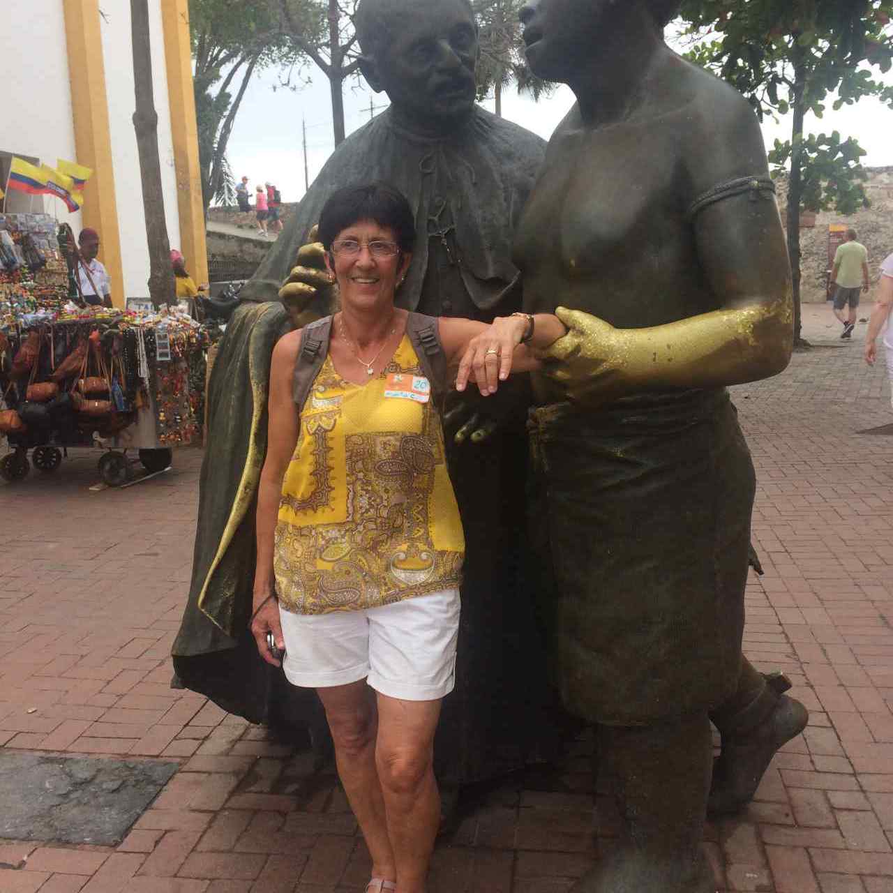 Wir sahen auch Reisegruppen von unserem Schiff, die von Örtlichen Reiseleitern durch die Straßen geführt wurden. Sie sahen nicht allzu begeistert aus, im Gänsemarsch hinter dem Führer her zu laufen. Demnach war unsere Entscheidung „auf eigene Faust gehen„ besser. Um 14:15 war der Treffpunkt an der San Pedro Claver (Kirche) mit unserer Begleitung die uns zum Bus bzw. zum Schiff zurück bringt.