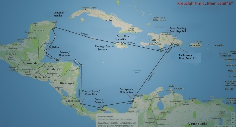 Es war wieder eine Reise mit mein Schiff dieses Mal konnten wir mit einem fast neuen Schiff unsere Kreuzfahrt machen. Das Schiff die mein Schiff 6 war für unsere bis- herigen Verhältnisse fast ein Riesenschiff. Es gibt viel Platz auch in der Sonne mit Sonnenliegen sowie größere Sonnenstühle. Aber leider hilft das hier auch nicht weiter, die Liegen sind wie auf den anderen Schiffen dieser Reederei immer voll belegt. Es gibt unheimlich viele Bars und auch Restaurants wo man sich aufhalten könnte, Auf den alten Schiffen wie die mein Schiff 1 gab es ein Zentrum wo man sich bei gutem Wetter aufhalten konnte. Bei dieser Menge an Bars hier an Bord ist es schwierig Bordbekannte wieder zu finden. Die Kreuzfahrt an sich war sehr schön, die angefahrenen Städte bzw. die angebotenen Ausflüge dazu, waren in der Mehrzahl nicht besonders gut. Ausnahme dazu war vielleicht Ochos Rios auf Jamaika, Cozumel war auch nicht schlecht ebenso die Insel Roatan und Puerto Limon. Entäuschend war Belize sowie Panama, hier hätte man auf Grund des hohen Ausflugspreises schon mehr erwarten können. Spitze dagegen war Cartagena die Metropole in Kolumbien, die Altstadt war ein Traum ebenso die Menschen sehr freundlich und angenehm. Unser letzter Ausflug in Santo Domingo war nur in Teilen gut. Aber vielleicht stellt man zu hohe Ansprüche an die Menschen und die Gebäude wo sie wohnen.
