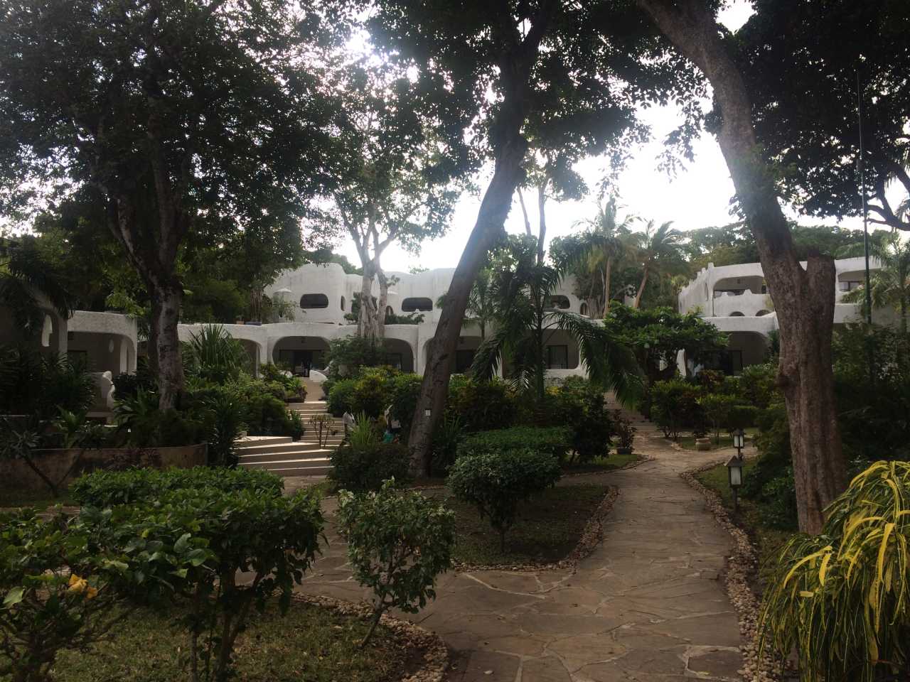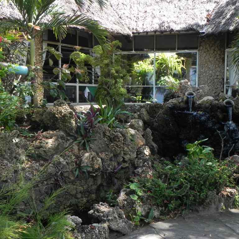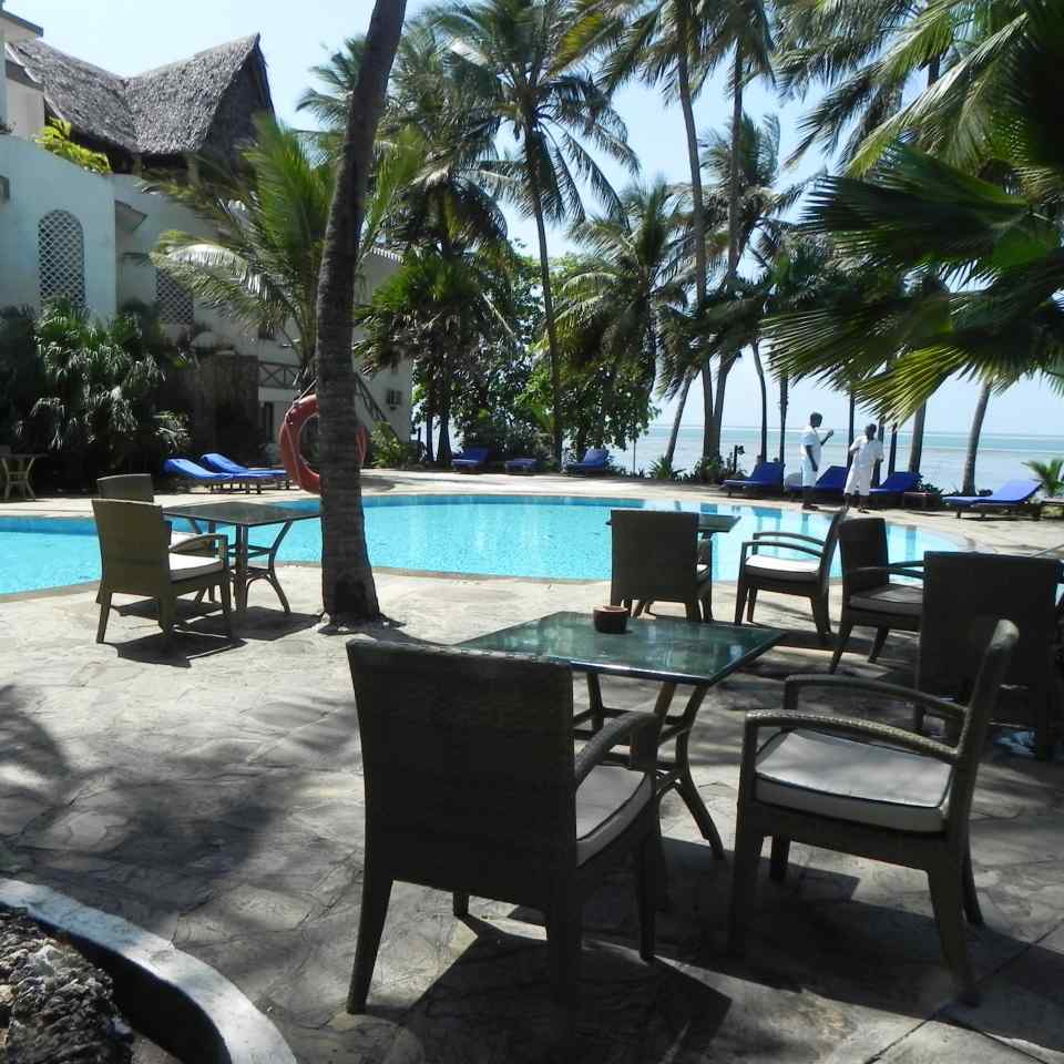 Es ist eine abgeschlossene Hotelanlage mit Tor und einem Pförtner sowie einer Wachmannschaft, und ist sehr gepflegt mit all Ihren Blumen und Sträuchern. Die einzelnen Häuser sind meist auch zweistöckig mit außenliegender Stahltreppe zum oberen Zimmereingang. Im Park blühen große Oleander-Sträucher und andere bunte Sträucher, es gibt große Fächerpalmen und viele verschiedene Farne. Das Zentral-gebäude ist ganz im Afrikanischen Stil gebaut, bis zum Dach offen gehalten mit Rezeption und vielen Sitzgelegenheiten, Geldwechsel-Schalter, Reisebüro, verschiedene Boutiquen und Bars. Desweiteren befindet sich im Eingangsbereich ein Souvenier-Geschäft, hier gibt es viele Giraffen, Elefanten, Trommeln und vieles andere aus Holz zu kaufen. Es gibt sogar ein Internet-Cafe, eines der Restaurants befindet sich in einem Holz-Schiff, das im Garten aufgestellt ist.