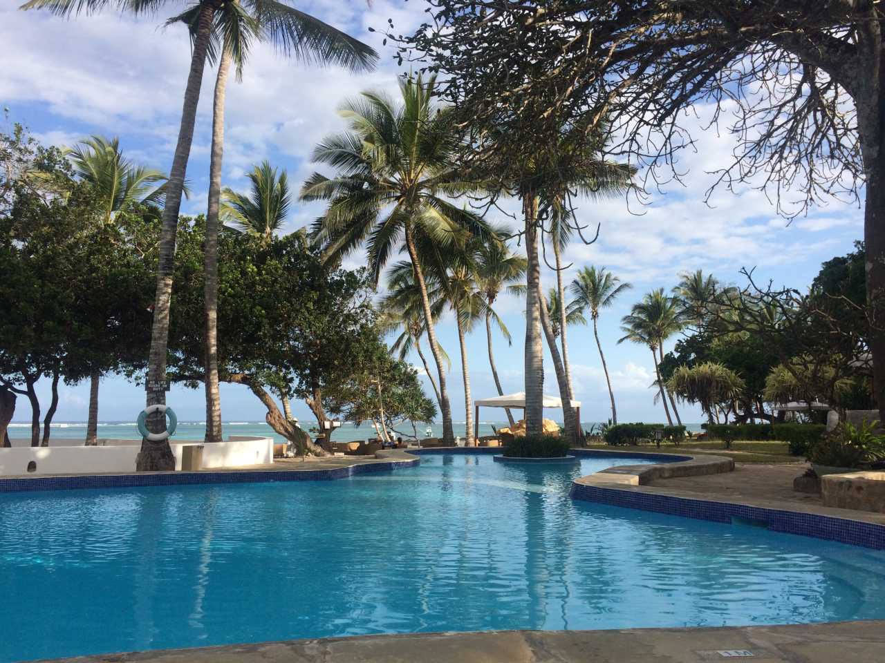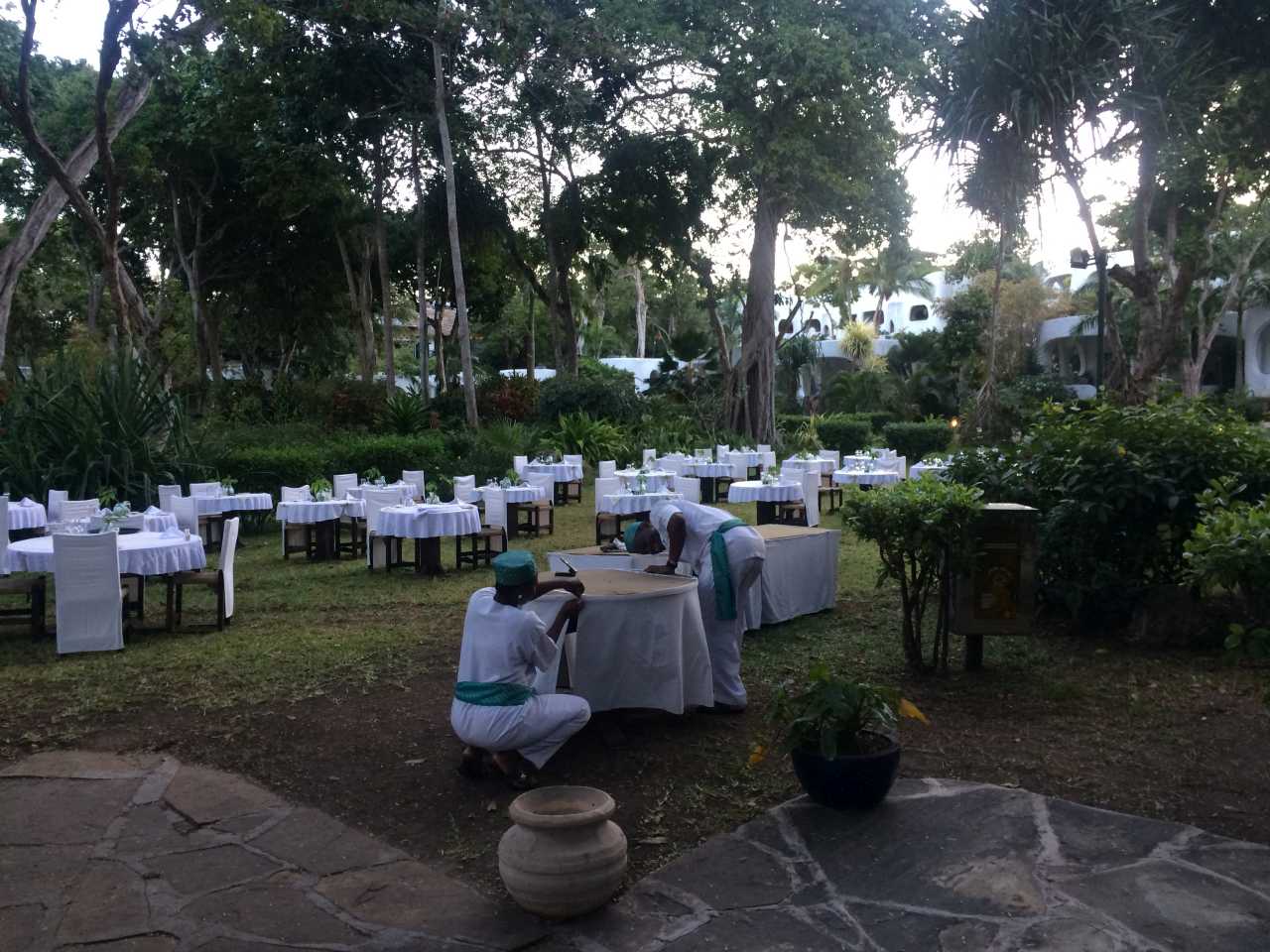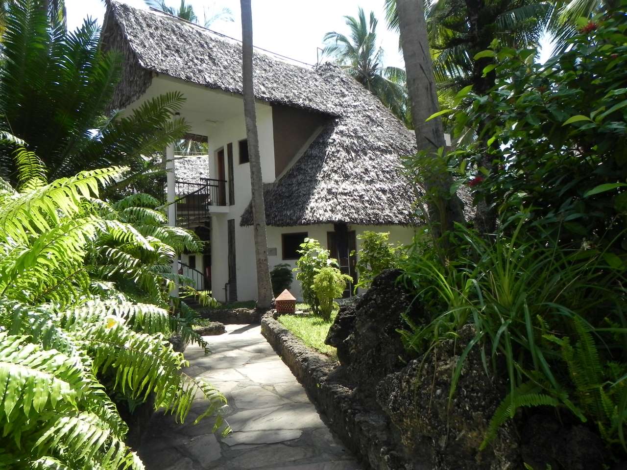 Es ist eine abgeschlossene Hotelanlage mit Tor und einem Pförtner sowie einer Wachmannschaft, und ist sehr gepflegt mit all Ihren Blumen und Sträuchern. Die einzelnen Häuser sind meist auch zweistöckig mit außenliegender Stahltreppe zum oberen Zimmereingang. Im Park blühen große Oleander-Sträucher und andere bunte Sträucher, es gibt große Fächerpalmen und viele verschiedene Farne. Das Zentral-gebäude ist ganz im Afrikanischen Stil gebaut, bis zum Dach offen gehalten mit Rezeption und vielen Sitzgelegenheiten, Geldwechsel-Schalter, Reisebüro, verschiedene Boutiquen und Bars. Desweiteren befindet sich im Eingangsbereich ein Souvenier-Geschäft, hier gibt es viele Giraffen, Elefanten, Trommeln und vieles andere aus Holz zu kaufen. Es gibt sogar ein Internet-Cafe, eines der Restaurants befindet sich in einem Holz-Schiff, das im Garten aufgestellt ist.