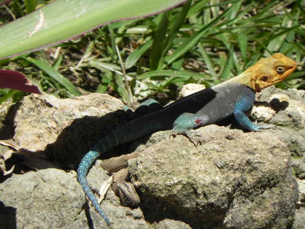 Als ich zu unserem Zimmer zurück kehre, sehe ich vor der Türe eine wunderschöne Agame, das ist eine Echsenart, die hier in Kenia vorkommt. Ihr Körper ist blau schimmernd mit einem goldfarbenen Kopf, die sich hier in der Sonne wärmt. Weiter oben am Eingangsbereich des Hotels waren auch einige Affen zu sehen, hier sollte man immer die Türen und Fenster geschlossen halten.