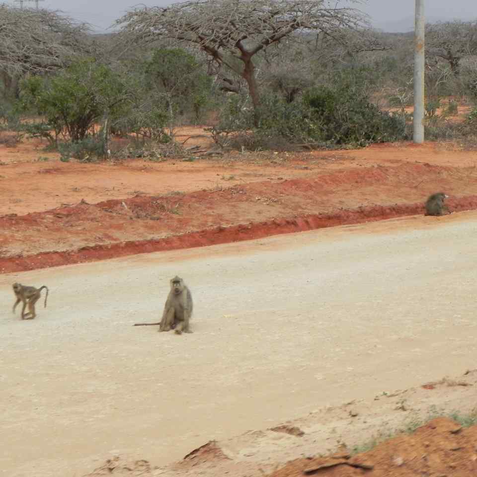 Nach einem kurzen Frühstück geht es los, wir verabschieden uns von unserem schönen Safari-Camp mit den tollen Safari-Zelten, wo wir uns so wohl gefühlt hatten. Gleich nach 7:00 fahren wir los, wir durchqueren ein letztes Mal den Tsavo West Nationalpark. Es geht durch ausgetrocknete Flussläufe, wir sehen eine Kolonie von Affen im Wald, auch die letzten Zebras und Giraffen sind zu sehen. So vergehen viele Stunden, wir hören, dass es Alexandra im anderen Jeep nicht allzu gut geht. Ob es vom Essen kommt, oder etwas anderes schuld ist, wissen wir nicht. Wir wünschen Ihr eine gute Besserung, denn der Weg ist noch sehr weit bis zum Meer. Im Laufe des Nachmittags kommt unser Chauffeur auf den Gedanken einen anderen Weg zu wählen, um nicht durch Mombasa fahren zu müssen.