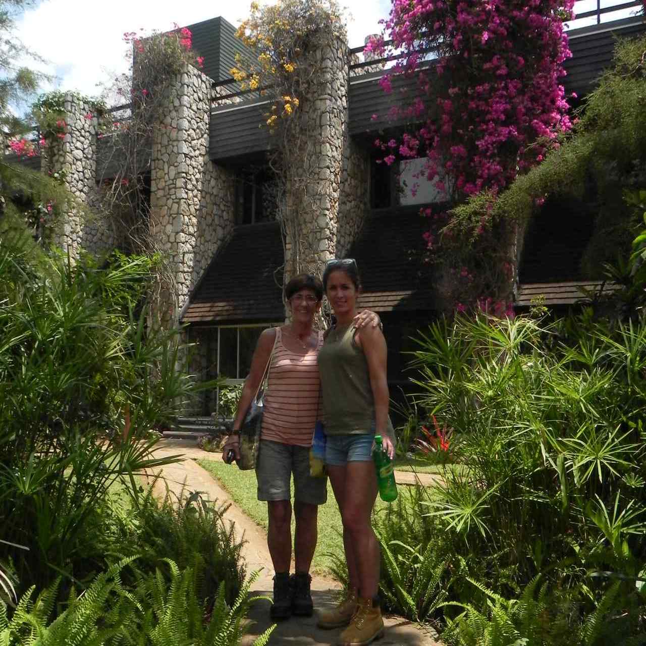 Wir fahren weiter zur Sarova Game Lodge***** wo wir unser Mittagessen einnehmen wollen. Die Lodge ist ein elegantes Steingebäude aus der Kolonialzeit, inmitten eines hübschen Landschaftsgarten und prächtigen Bougainvilleen-Sträuchern. Die Lobby im Inneren ist traumhaft, und der Speisesaal ist sehr gediegen. Es ist ein großes Mittags-Buffett aufgebaut, an dem wir uns alle bedienen. Was wir im einzelnen gegessen haben weiß ich nicht mehr, aber es hat wohl den meisten geschmeckt. Danach besuchen wir noch den schönen Garten im Innenhof, es gibt hier sogar einen Pool. Zu erwähnen wäre vielleicht, dieses Hotel, wie auch das folgende Haus das wir noch besuchen werden, gehört zu den Sarova-Hotels.