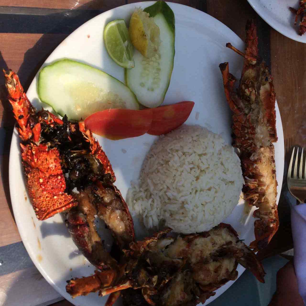 Jetzt ist auch schon Mittag geworden, wir gehen gemeinsam zu unserer Sitzgruppe vor dem Sails-Restaurant. Ein Kellner bringt uns die Speisekarte und nimmt die Getränke-Bestellung auf. Chris und Vito bestellen sich jeder einen Lobster, die meisten anderen eine Pizza.Der Kellner muss erstmal nachfragen, ob es heute eine Pizza gibt, aber es klappt tatsächlich. Im Anschluss gehen wir auf unsere Liegen zurück. Später spazieren wir noch mit Dagmar und Klaus am Strand entlang.