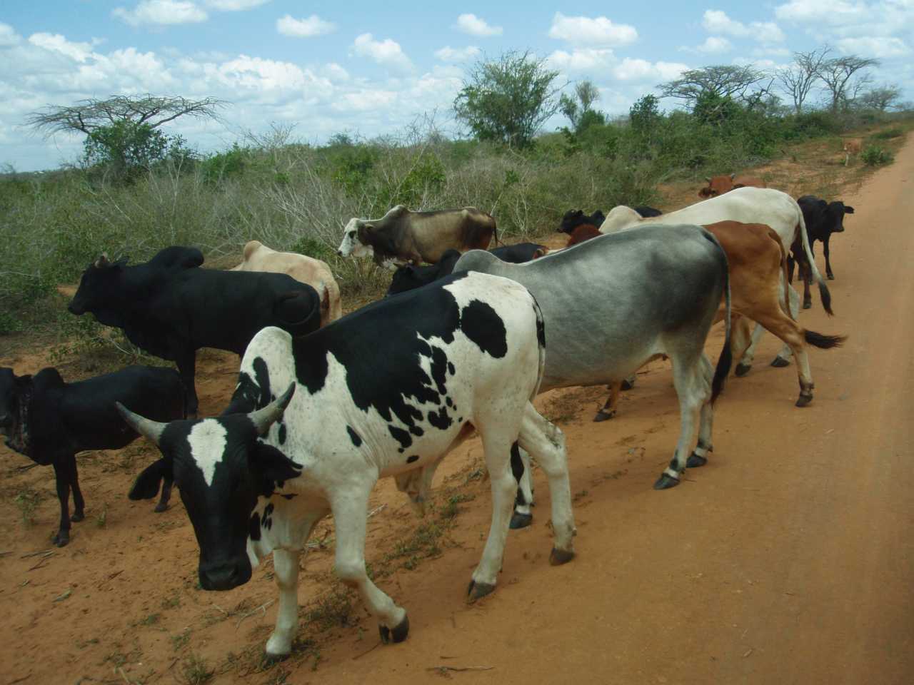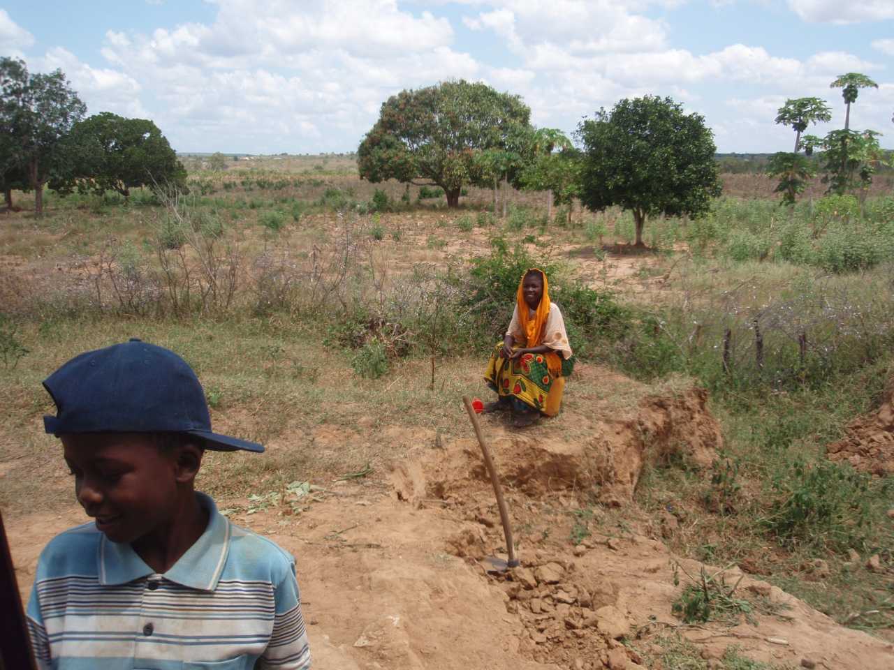 Die Fahrt über die A 109 in Richtung Nairobi, quer durch die Savanne , war schon beeindruckend, mal war die Straße geteert, mal geschottert, zum überholen anderer Fahrzeuge und LKWs war es durchaus üblich, die Hauptstraße über eine seitliche Böschung nach unten zu verlassen, und nach dem Überholvorgang wieder hinauf auf die Hauptstraße zu fahren. Am Rand dieser Transitstraße sehen wir immer wieder Haufen mit Zweigen oder gebundene Äste, die aber schon mal im Feuer waren. Des Rätsels Lösung ist, die Anwohner machen hier Holzkohle und verkaufen sie. Auf LKWs werden sie dann in die Städte gebracht, wo die dortigen Bewohner sie zum Kochen verwenden. Auf unserer Fahrt durch die Savanne begegnen uns immer wieder mal Paviane, später sehen wir noch Impalas, das ist eine Antilopenart. Zu guter Letzt bekommen wir jetzt auch vereinzelte Zebras zu sehen. Auf der Strecke nach Voi sehen wir auch Sisalfelder, und auch junge Bananen-Anpflanzungen. Im Hintergrund ist die neue Eisenbahnlinie, die bis nach Nairobi führt, zu sehen.