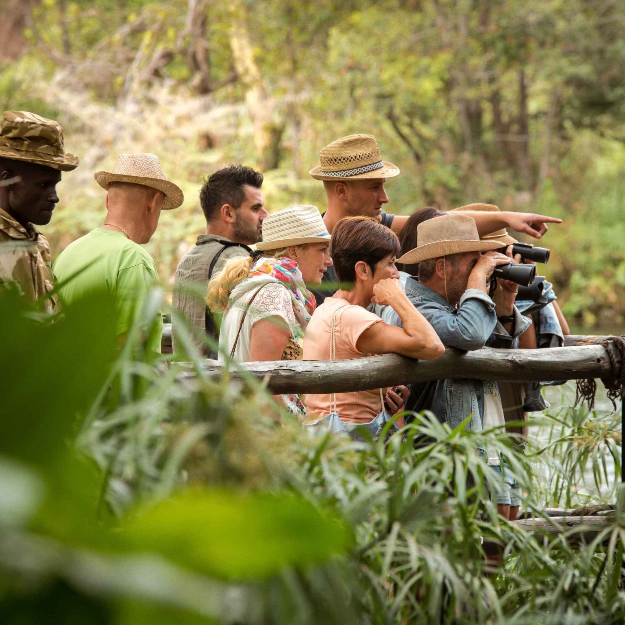 Auf dem Weg gibt es noch Afrikanische Büffel und einige Giraffen, sowie ein Warzenschwein zu sehen. In der Nähe des Ufers im hohen Gras sehen wir zwei junge Löwen liegen, allerdings noch ohne Mähne, denn diese bekommen sie anscheinend erst in in späteren Jahren. Sie liegen faul herum ohne sich groß mal zu bewegen. Nach einer Weile fahren wir weiter, vor uns taucht plötzlich eine große Herde Büffel auf, aber sie nehmen keine Notiz von uns. Der Afrikanische Büffel oder auch Kaffernbüffel genannt, gehört zu den Big Five und ist einer der angriffslustigsten dieser Gruppe. Auf einem Baum, in der Nähe sitzend, beobachtet ein Schrei-Seeadler die Büffel und unsere Gruppe.