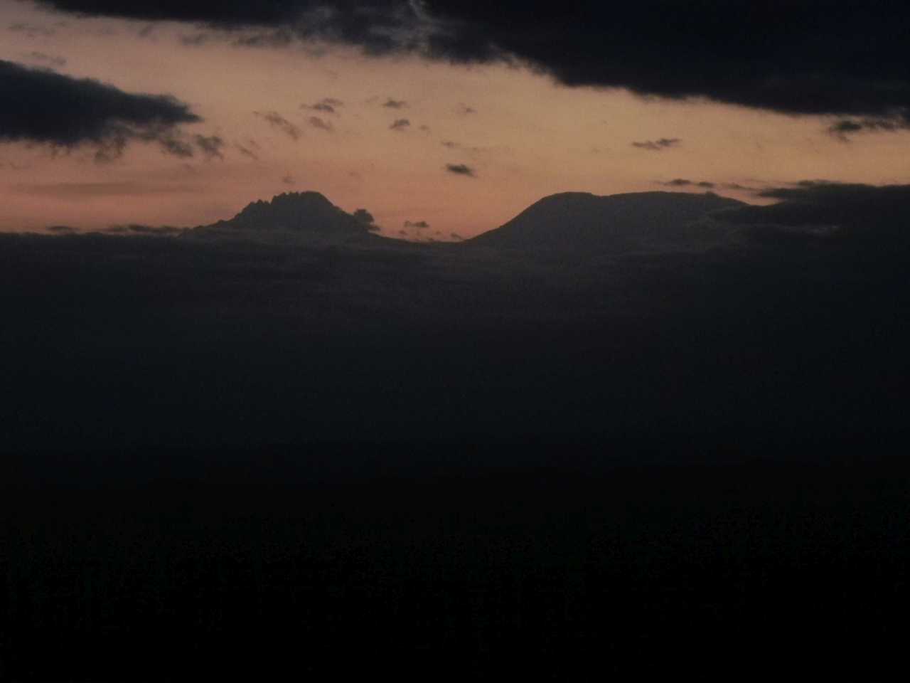 Von hier aus in eine andere Richtung schauen konnte man auch unser Camp die Severin Lodge im Dämmerlicht erkennen. Um 18:45 war es dann soweit, der Ferndunst legte sich und jetzt konnten wir die Umrisse des höchsten Berges hier in Afrika erkennen. Der Kilimandscharo mit seinen zwei Gipfeln dem 5895 Meter hohen Kibo und dem kleineren Mawenzi der mit 5148 Meter deutlich kleiner sein soll. Von unserem Standort aus sind beide gleich hoch gewesen. Kurz nach 19:00 sind wir dann wieder zum Camp gefahren, es ist ja mittlerweile schon stockdunkel geworden. Als nächstes mussten wir noch unser Gepäck zusammen packen, denn morgen früh geht es dann wieder zurück nach Mombasa bzw. Diani Beach. Bis dahin ist ein weiter Weg, wir rechnen mit ca. 8 Stunden Wegstrecke. Nach dem Koffer packen sind wir noch ins Out of Africa Restaurant gegangen, um eine Kleinigkeit zu essen, an der Bar kommen wir natürlich auch nicht vorbei, ohne etwas zu trinken. Aber dann geht es schnell in die Koje, die Massai`s bringen uns alle sicher in unsere Unterkünfte.