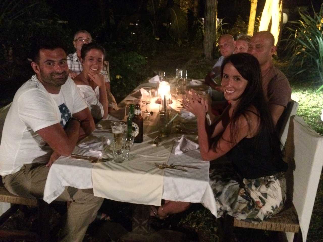 Aber zuerst ist Abendessen angesagt, das Hauptrestaurant ist wie alle anderen Lokalitäten, die Bars und dem Sails Restaurant einstöckig, und mit einem riesigen Strohdach ausgestattet. Unser Tisch befindet sich heute drinnen im Restaurant, es ist ein Beilagen-Buffet aufgebaut. Die Hauptgerichte wie Fleisch oder Fisch befinden sich draußen, eventuell auch im Holzkohlengrill. Nach unserem gemeinsamen Essen gehen wir alle noch eine Treppenstufe höher zur Bar. Die Getränke von uns sind vielseitig, die einen trinken Bier, Klaus bevorzugt einen guten Gin, er bekommt dazu eine Flasche Tonic geliefert, was die Mischung des Getränks nicht immer einfach macht. Die Mädels und die Schwiegermütter trinken Wasser und Wein in dieser Reihenfolge, und ich trinke wie immer gern einen oder auch mehrere Cuba Libre`s. So verbringen wir den ersten Abend hier am Meer, vor uns der riesige Indische Ocean .