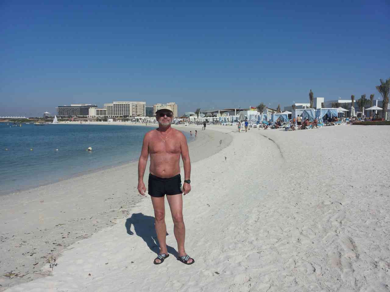 So um acht Uhr sind wir aus den Federn gekommen, schnell fertig machen zum Frühstücken, wie immer gibt`s für mich ein Omelette mit Pilzen. Mein Leibgericht im Ausland soweit es möglich ist. Noch ein kurzes Plaudern mit dem Ehepaar aus Osnabrück, die gerade in den Speisesaal gekommen sind dann gehen wir auf`s Zimmer. Es ist zwar noch früh, aber wir wollen heute noch zum Yas-Strand, schließlich ist heute unser letzter Tag hier in Abu Dhabi. Um 10:00 laufen wir los, es ist ja nicht weit bis zum Strand. Vom Hotel sind es maximal zehn Minuten. Es ist und wird heute der wärmste Tag in dieser Woche.