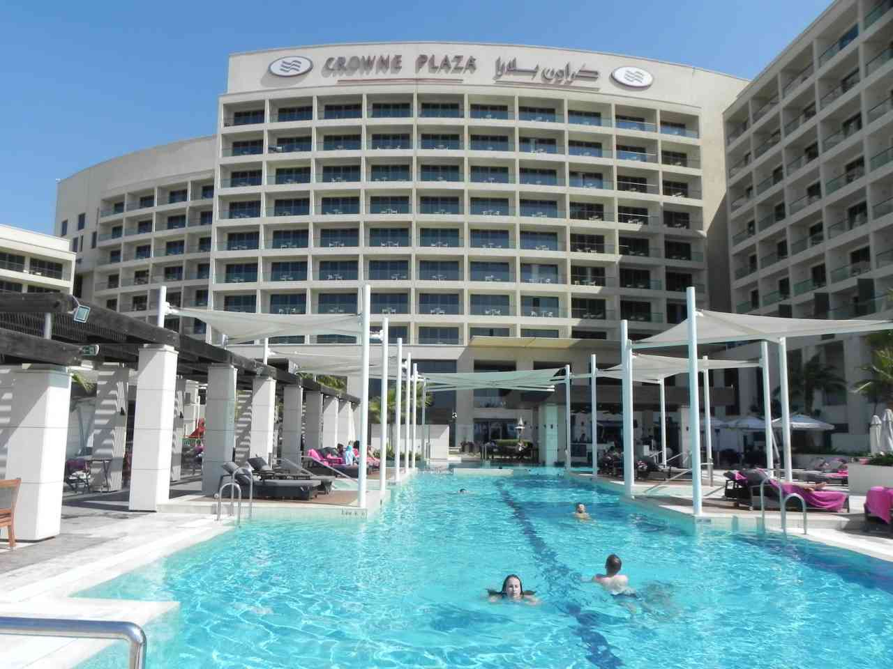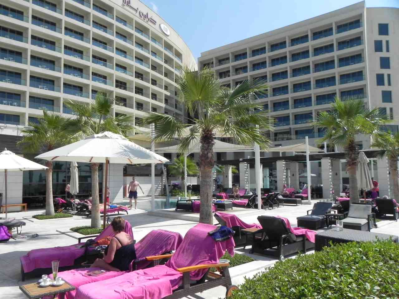 Unser Transfer zum Hotel dagegen ging sehr schnell und reibungslos, nach einer Viertelstunde sind wir schon im Hotel Crowne Plaza. Unser Haus ist auf Yas Island einer Insel wo einige der Luxushotels von Abu Dhabi liegen. Das Einchecken geht reibungslos voran, aber leider können wir erst ab 11:30 unser Zimmer beziehen. So sind wir mit unserm Handgepäck erst mal in das Restaurant zum Frühstücken gegangen. Mit einem Pilzomelett sowie danach Brötchen mit Marmelade und Käse meinem Standard-Frühstück auf Reisen konnte unser Urlaub dann beginnen. Im Anschluß sind wir zum Hotelpool gegangen. Es war um diese frühe Zeit so gut wie gar nichts los, so das wir nicht aufgefallen sind mit unseren dicken Jeans von der Anreise. Schnell auf die Sonnenliegen und die Augen zu, wir waren doch sehr müde und kaputt nach dem langen Flug.