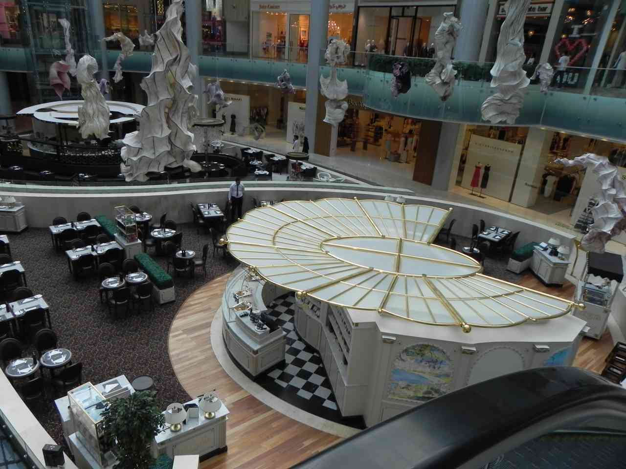 Nach ca. eineinhalb Stunden sind wir dann mit dem Taxi zurück zur Insel Yas Island gefahren. Es bot sich aber an, noch kurz in das neue Einkaufszentrum die Yas Mall zu gehen. Für den Weg hierher zahlten wir dann 49 Dirham (etwas mehr als 10 Euro). Das Einkaufszentrum selber hat mir gar nicht gefallen, nur Kleidung und Schmuck und vereinzelne Cafes waren hier geboten. Im Anschluß sind wir in den Eingangsbereich der Ferrari-World gegangen, hier stehen ein Roter Ferrari F10 aus der Formel 1- Weltmeisterschaft 2010 sowie einige Rennmotoren einfach nur so als Dekorations-Marterial herum.