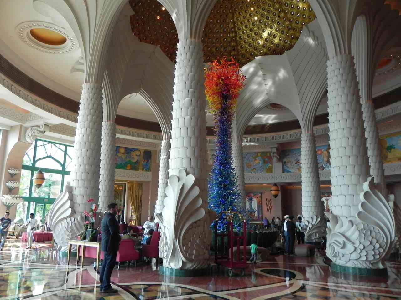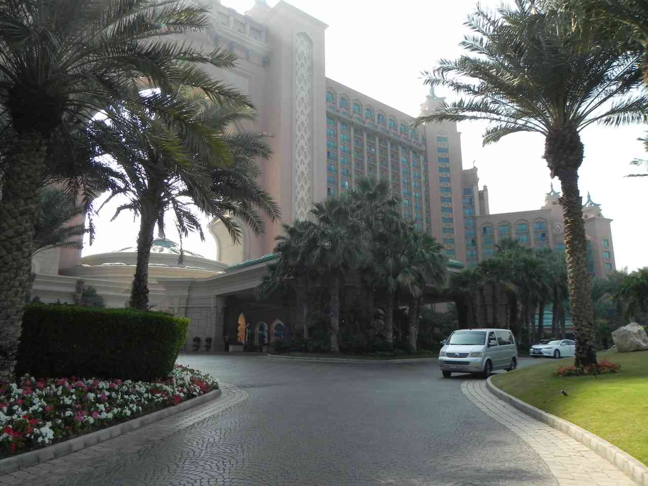 Kurz nach 9:00 geht unser Taxi vor dem Hotel los, bevor wir Abu Dhabi verlassen fährt unser Taxifahrer nochmals zum Tanken. In der Wüste gibt es wohl keine Tankstellen, für die Strecke von ca. 120 Kilometer nach Dubai brauchen wir knapp ein Eineinviertel Stunden. Die Einfahrt nach Dubai ist grandios und beeindruckend, als erstes fahren wir zum Hotel Atlantis auf the Palm. Unser Taxi bringt uns direkt vor die Eingangs-lobby vom Hotel Atlantis.
