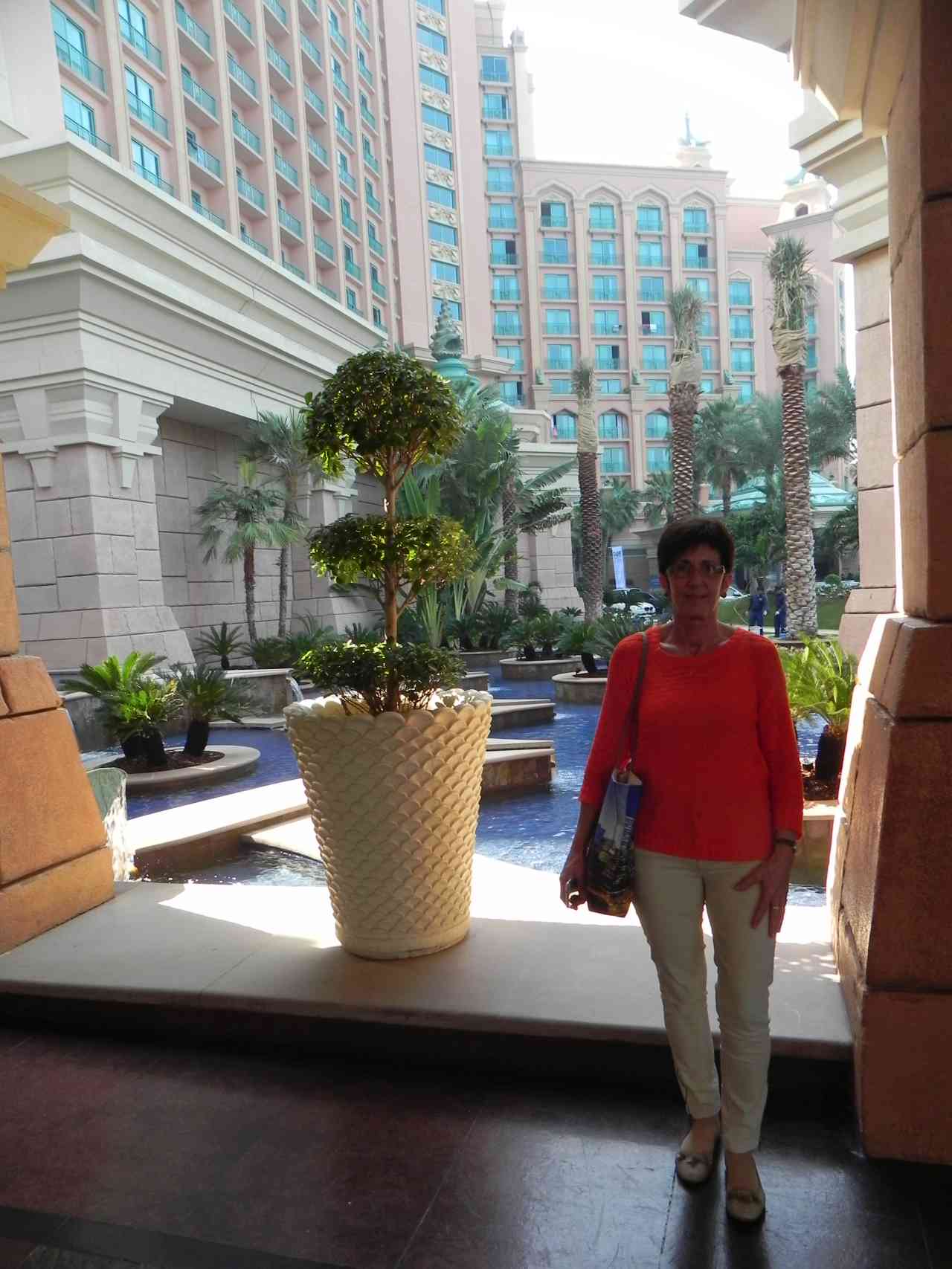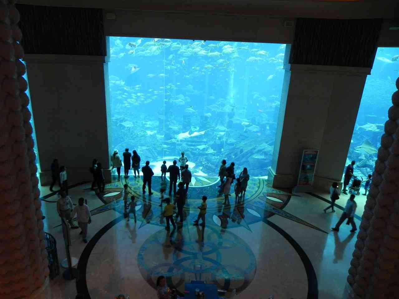 Hier steigen wir aus und kommen unbehelligt vom Sicherheitspersonal in die Halle, es ist ein Traum kaum vorstellbar so schön ist es hier. Nachdem wir einige Zeit in der Eingangshalle verbracht haben, gehen wir anschließend noch eine Etage tiefer. Vor unsern Augen ist ein Riesengroßes Aquarium, hier schwimmen unter anderem wunderschöne Mantelrochen, das sind im Moment die einzigen Fische die ich kenne und auch benennen kann. Nachdem wir einige Zeit im Hotel verbracht haben, verlassen wir das Haus und machen noch ein paar Bilder vor dem Hotel. Ein zweites mal kommen wir aber nicht mehr in die Hotelhalle rein, so gehen wir auf die Straße zurück und halten ein Taxi an und fahren zurück über die Palmeninsel in die Stadt Dubai.