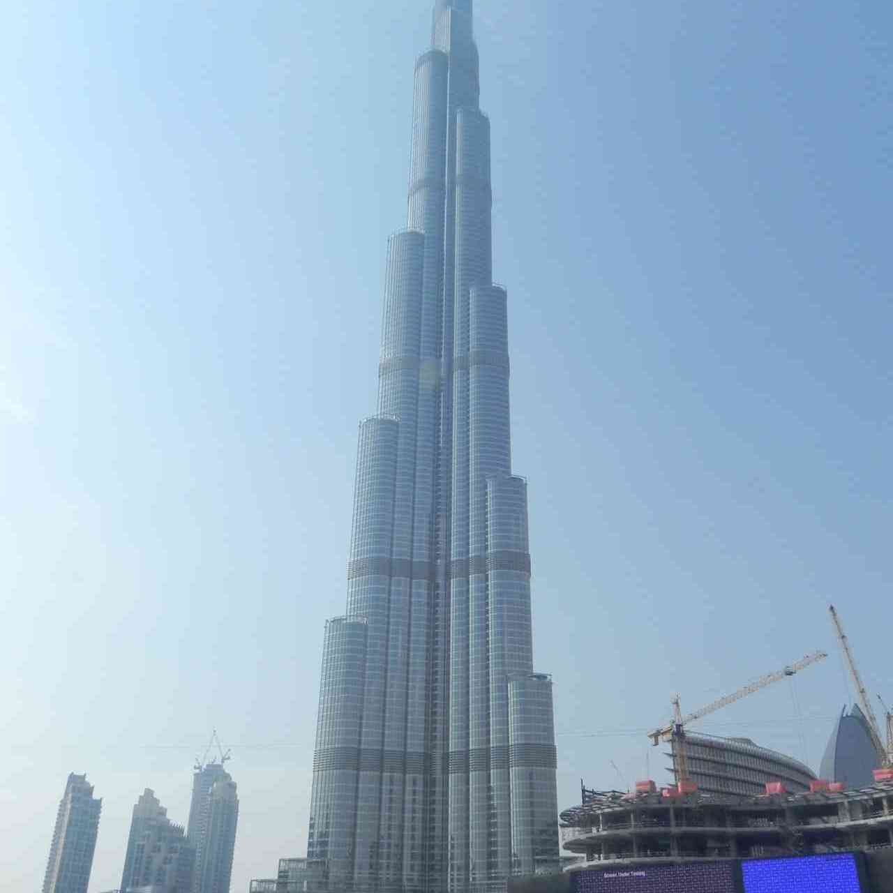 So gehen in der Mall spazieren und suchen nebenbei das Asia Restaurant das wir schon Zuhause für unser heutiges Abendessen ausgesucht haben. Danach gehen wir nochmals nach draußen um in der warmen Nachmittagssonne auch die Schönheit dieser herrlichen und einmaligen Stadtlandschaft zu genießen. Gegen 16:30 suchen wir dann den Eingang zum Fahrstuhl der uns auf den Burj Khalifa bringen soll, und finden ihn bei der Geschäftsstelle At the Top im Untergeschoss der Dubai-Mall. Zusammen mit vielen anderen Touristen fahren wir mit dem Fahrstuhl in rasanter Geschwindigkeit (55sec) nach oben. Im der 124. Etage (450 Meter) befindet sich eine offene Außen-terrasse sowie ein vollverglastes Stockwerk beide mit mit tollem Blick nach außen und nach unten und über die Wolkenkratzer von Dubai. Es mag ja viele hohe Häuser auf der Welt geben, aber dieser bizarre Baustil wie hier ist außer vielleicht in Shanghai wohl einmalig.