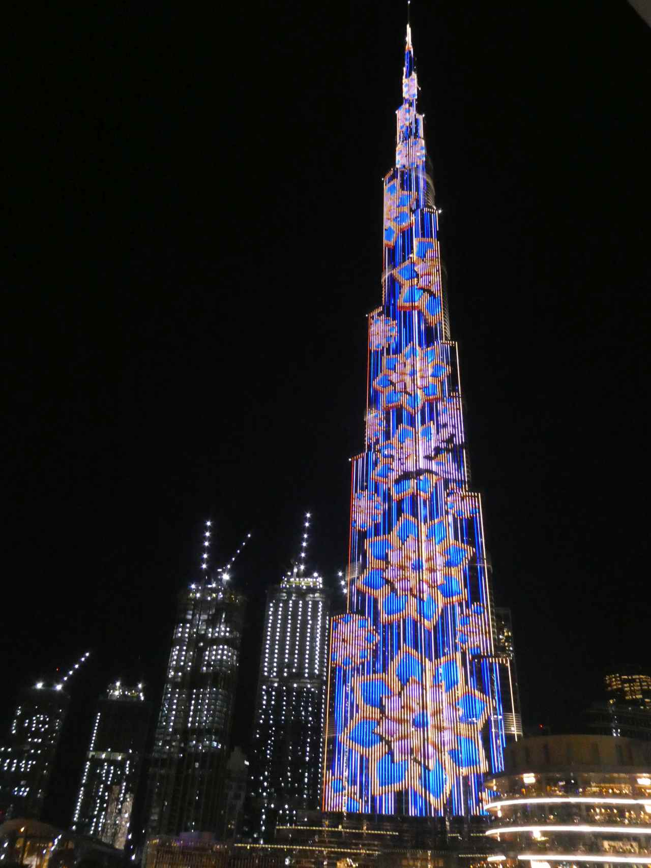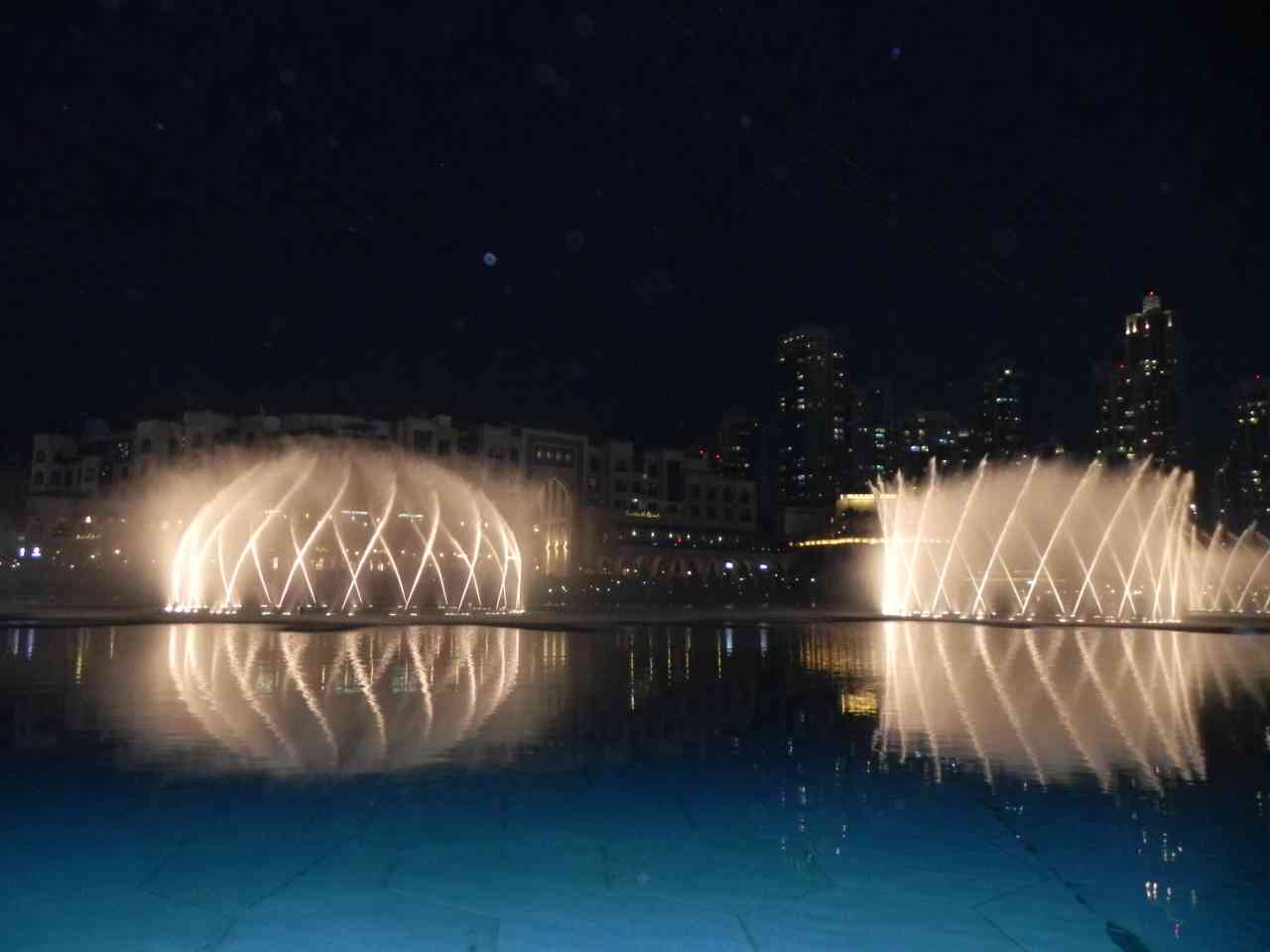 So können wir noch am Platz vor dem Burj Khalifa und der Dubai Mall spazieren gehen. Ab 18:00 beginnen die Wasserspiele, es sind wohl die gleichen die beim Hotel Bellagio in Las Vegas geboten werden. Ein Traum mit Musik man muss es schon mal gesehen und erlebt haben. Dieses Spektakel schauen wir uns gleich drei mal an. Inzwischen ist es Dunkel geworden und der Turm wird beleuchtet. Mehr als 800 Meter in sehr vielen verschiedenen Motiven, mal in Wellenform oder als Teppich-muster oder anderes wird er beleuchtet, einfach toll. Man kann sich hier kaum satt sehen. Kurz vor 22:00 beschließen wir dann unser Übernachtungshotel in Dubai aufzusuchen. Wir müssen ja hier auch noch Einchecken. Die Taxis finden wir in einer riesigen Garage gleich neben der Dubai Mall, bestimmt an die 50 Stück man kann`s kaum glauben. Die Fahrt zum Al Khoory Executive Hotel und auch das Einchecken geht zügig voran, nach noch einem kurzen Spaziergang vor dem Hotel beschließen wir den heutigen Tag.