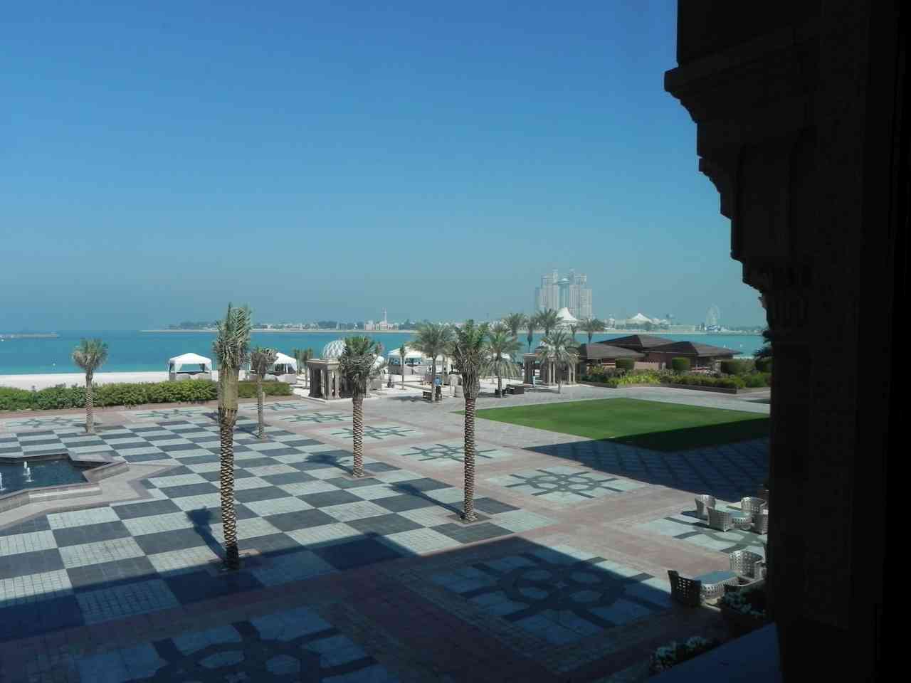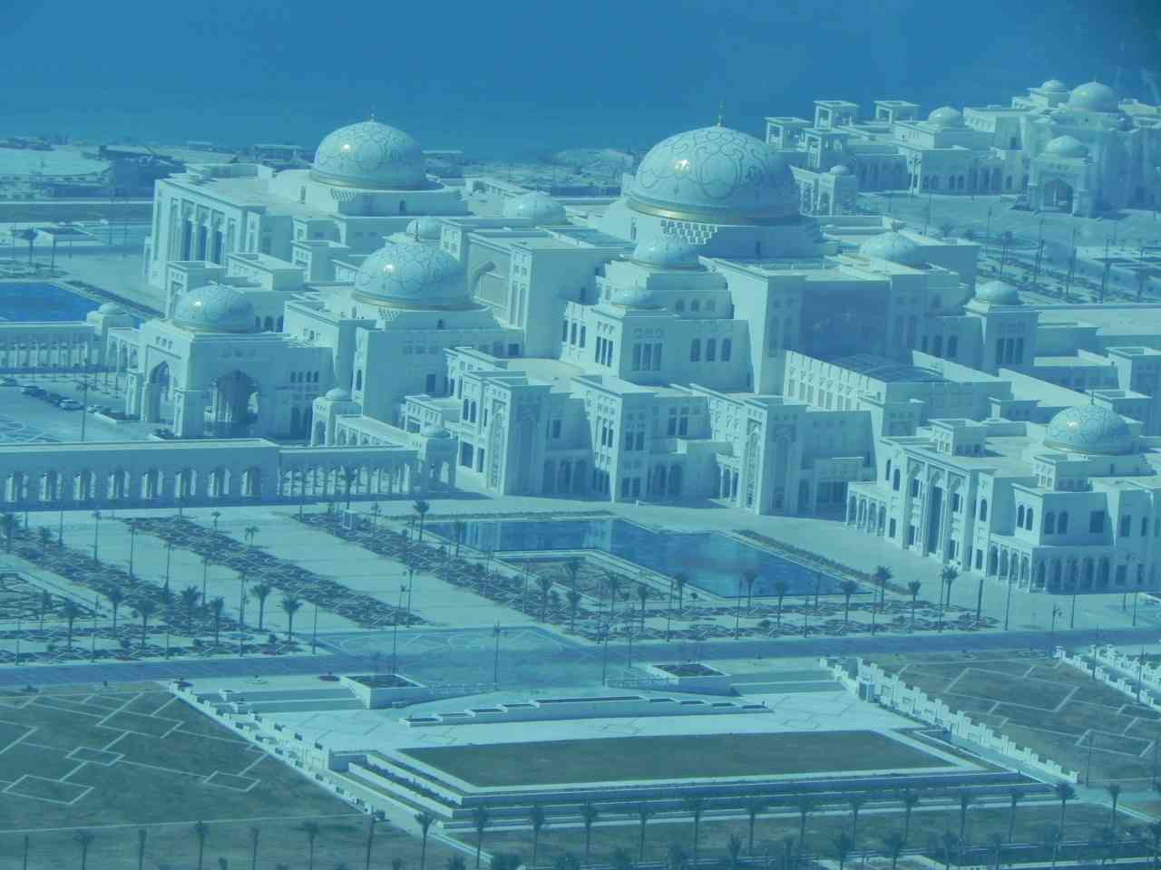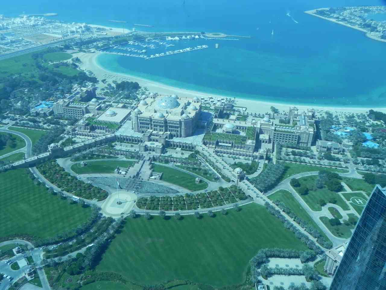 Von hier oben überblickt man erst welche gigantischen Ausmaße das Emirates Palace Hotel sowie das Gelände des Präsidenten-Palastes Qasr al Watan (Sheikhpalast) hat. Gegen 15:00 sind wir dann wieder mit einem Taxi vom Zentrum am Kreuzfahrthafen vorbei zu unserem Hotel auf Yas Island zurück gefahren.