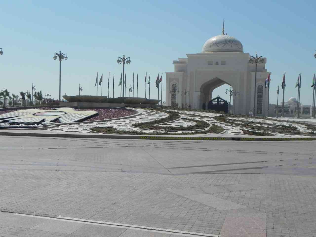 Wir verlassen den Park des Hotels, auf einer Tafel an der Hauptstraße sehe ich den Hinweis „ neuer Präsidenten-Palast“. Was mich natürlich neugierig macht, irgendwo muss der Scheik von Abu Dhabi ja wohnen. Wir gehen dem Schild nach und kommen an ein riesiges Eingangsportal.