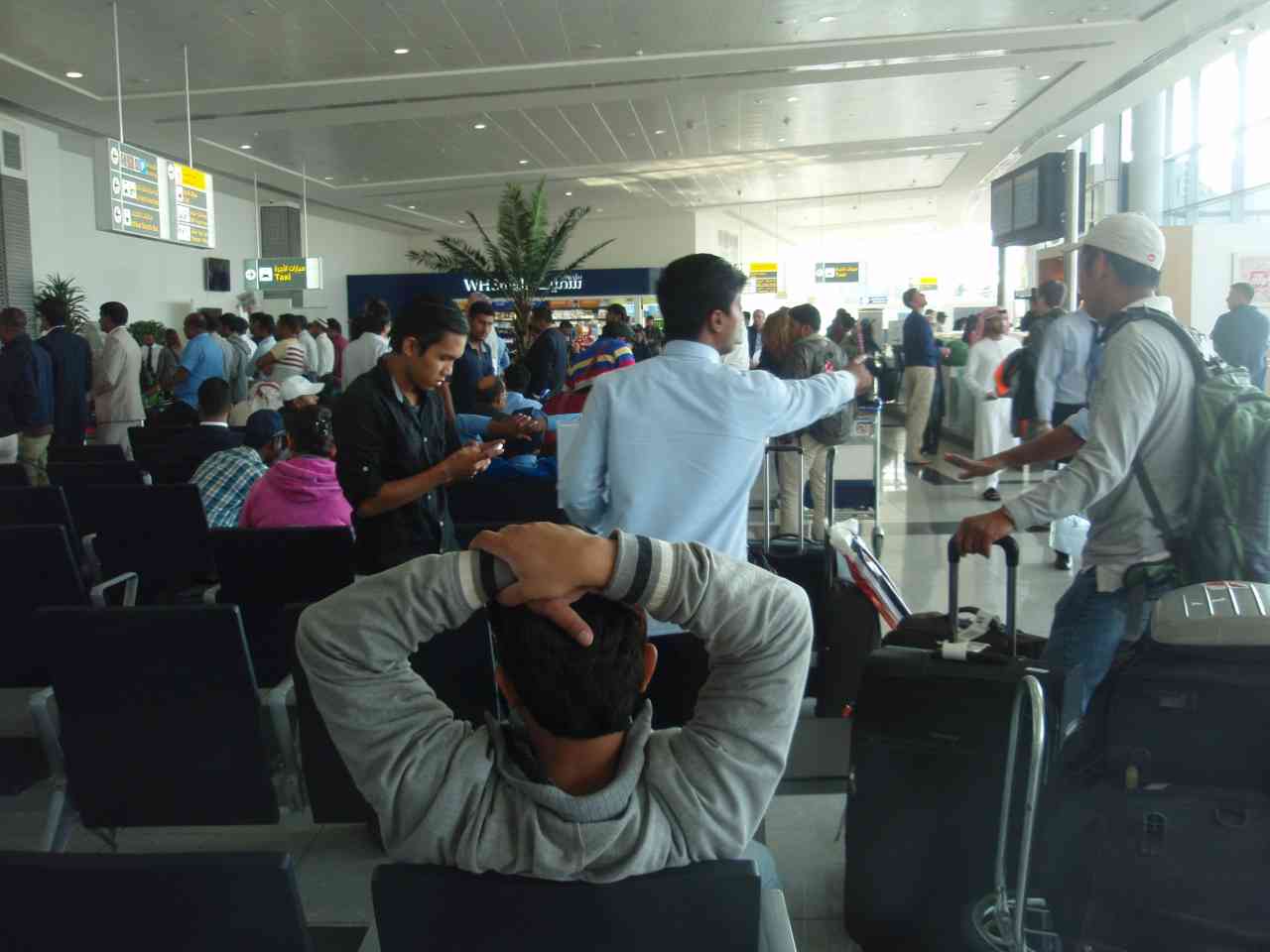 Aber irgendwann ist unsere Zeit hier zu Ende, kurz vor 23:00 steht unser Taxi da. Wir steigen ins Auto ein, müssen aber noch etwas warten, es sollte ein weiteres Pärchen aus München mitfahren. Da Sie aber nicht kommen, und auch nicht in Ihrem Zimmer sind, fahren wir dann los. In einer Viertelstunde sind wir im Flughafen, zum Check-In und zum richtigen Terminal fragen wir uns durch. Wir müssen hunderte von Metern bis zu unserm Gate 3 zurück legen. Nachdem die ganzen Flugzeuggäste schon einige Zeit im Gate gesessen haben, müssen wir alle nochmals zurück um unser Tickets irgendwo anders abstempeln lassen.