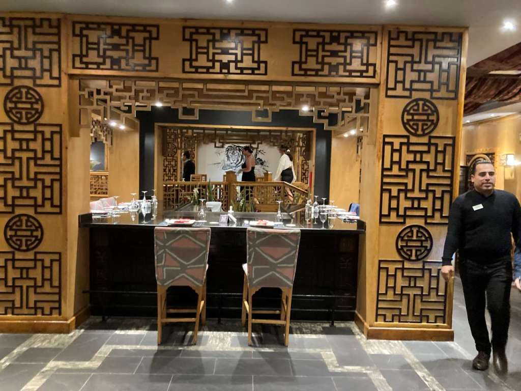Gegen 17:30 gehen wir zurück in unser Zimmer um zu Duschen und uns für den weiteren Abend fertig zu machen. Wir wollen heute Abend im Schwesterhotel Asiatisch essen. Das Manzoku-Restaurant (Asia) befindet sich zwischen dem Shahrazad (Internationale Küche) meines Wissens das Hauptrestaurant vom Sunrise Royal Makadi und dem Splash Imbiss. Hier befindet sich auch eine kleine Bühne für Kindervorstellungen.