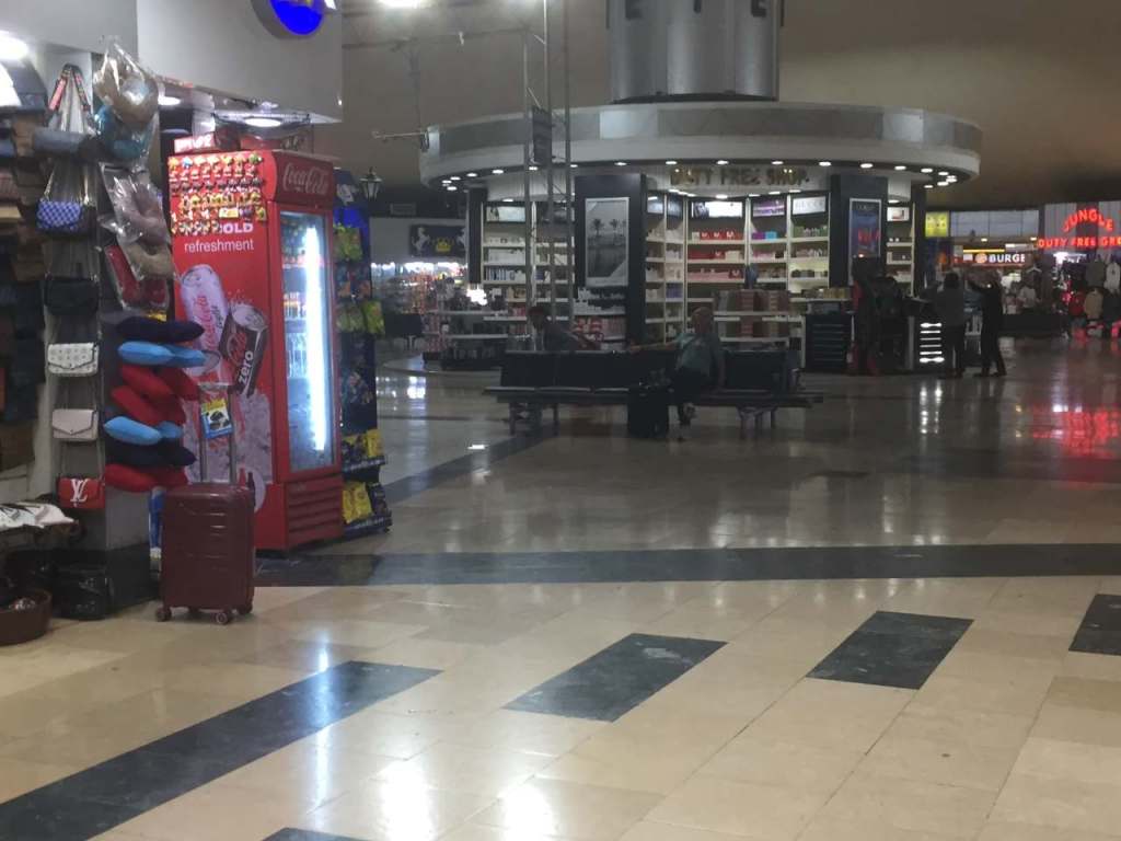 Nachdem wir über die hintere Treppe aus dem Flugzeug steigen konnten, fahren wir mit einem Flughafenbus zum Terminal 1. Ich hatte mich schon zu Hause vorbereitet, um an einem Bankschalter das notwendige Einreise-Visa für Ägypten zu kaufen. Aber jetzt schaut alles wieder ganz anders aus, als es in den Internetbilder zu sehen war. Wir mussten zuerst an den Schaltern der verschiedenen Reiseanbietern vorbei gehen, unsere Einreisekarten für Ägyptenhatten wir schon im Flugzeug bekommen und ausgefüllt. Bei den Bankschaltern hier im Terminal hätte das Visa 25 Euro gekostet, bei unserem Reiseanbieter „Schauinsland Reisen“ bezahlen wir jetzt 30 Euro pro Person. Aber es ist schon egal, ansonsten haben wir All Inclusive in unserem Hotel gebucht.