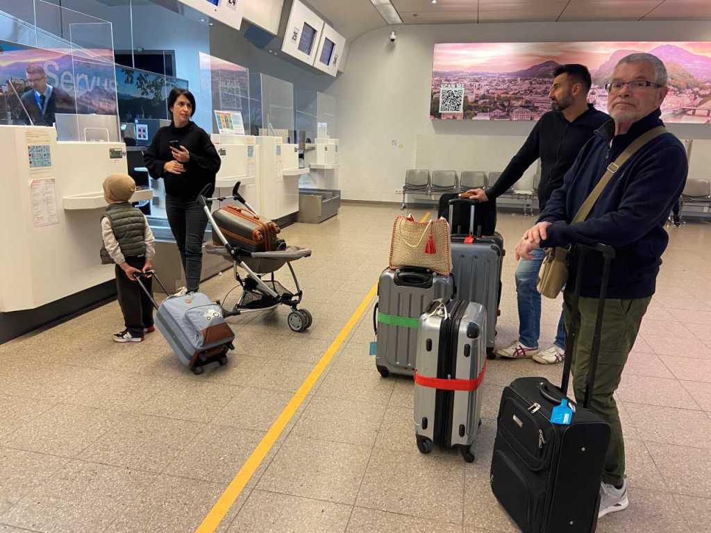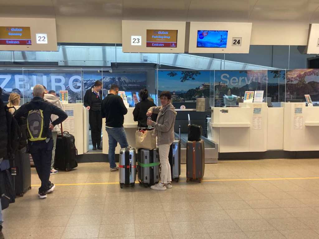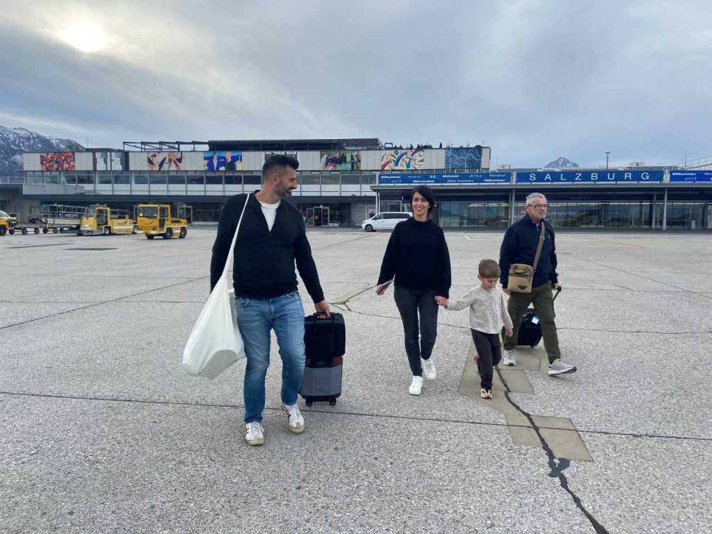 Auch hier geht es relativ zügig voran, an Bad Aibling und dem Chiemsee vorbei, so dass wir bald die Landesgrenze bei Piding erreichen. Von hier sind es nur noch ca. 10 km bis zum Flughafen in Salzburg. Wir haben vor Wochen einen Parkplatz im Parkhaus 4, nahe dem Terminal gebucht . Es ist 10:50 als wir das Parkhaus erreichen, von hier müssen wir nur über die Zufahrtstrasse gehen um den Terminal zu betreten. Unser vierjähriger Enkel hat sich während der langen Autofahrt unglaublich tapfer und angenehm verhalten.