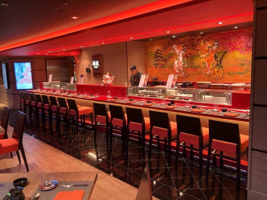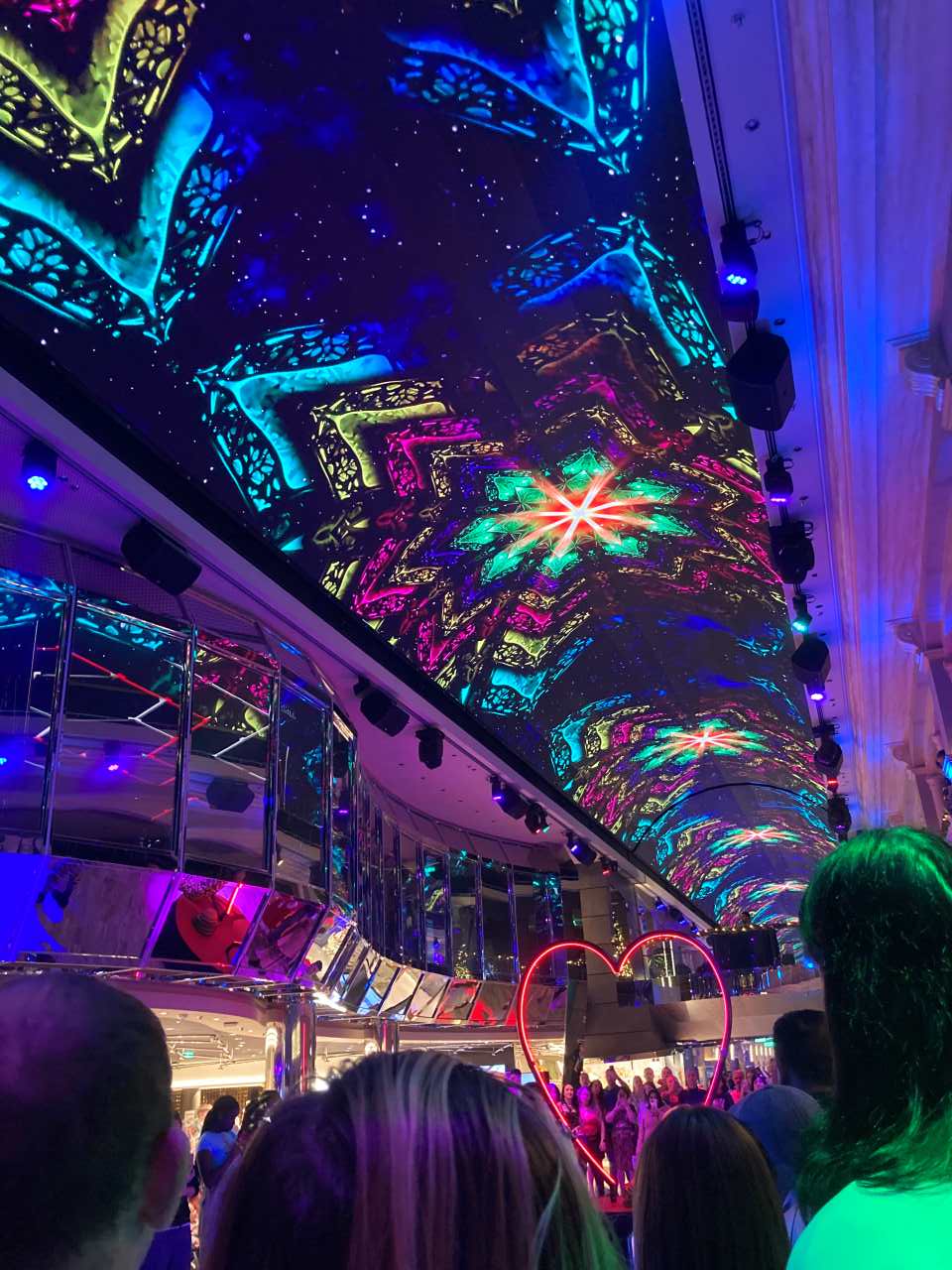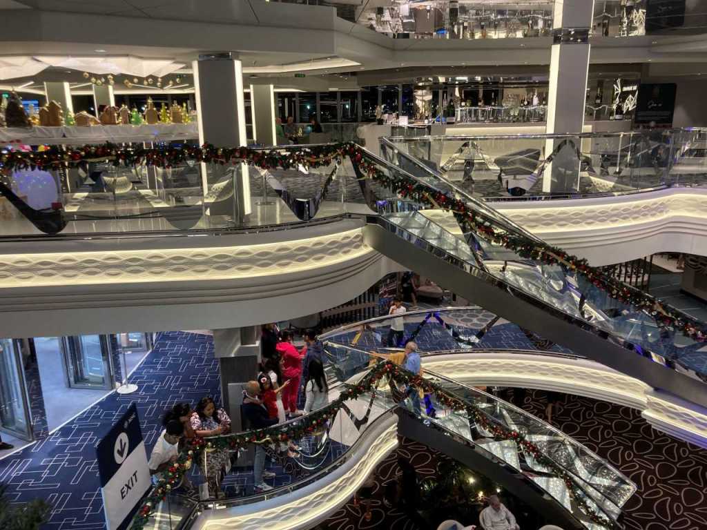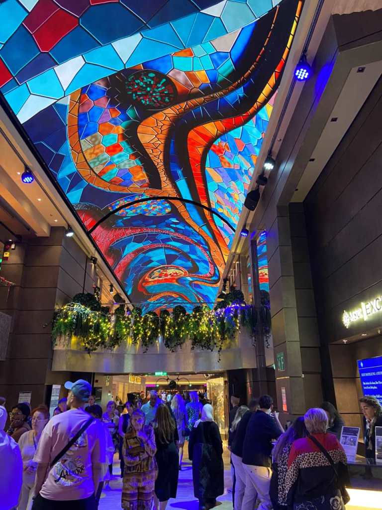 Die Galeria mit ihrem 112 Meter langen Led-Himmel auf Deck 6 und 7 ist im vorderen Bereich des Schiffes, das heißt vom Delphi-Theater bis zum Atrium mit Bar`s und verschiedenen Bezahl-Restaurant bestückt. Vom Atrium bis nach hinten am Heck befindet sich das Casino und eine weitere schöne Tanzbar Carousel Lounge, sie wurde in der Vergangenheit nur für besondere Shows benutzt. Sie kann mittlerweile von den Passagieren ganztags benutzt werden, Als wir im Laufe der Woche einmal die Carousel Lounge aufsuchten war aber sie ohne weitere Gäste.