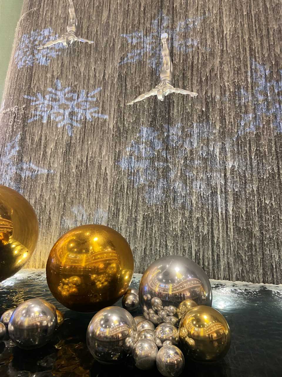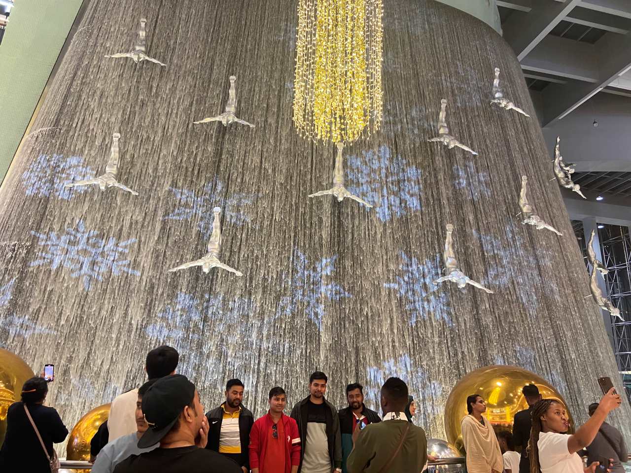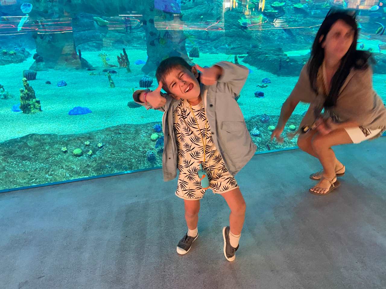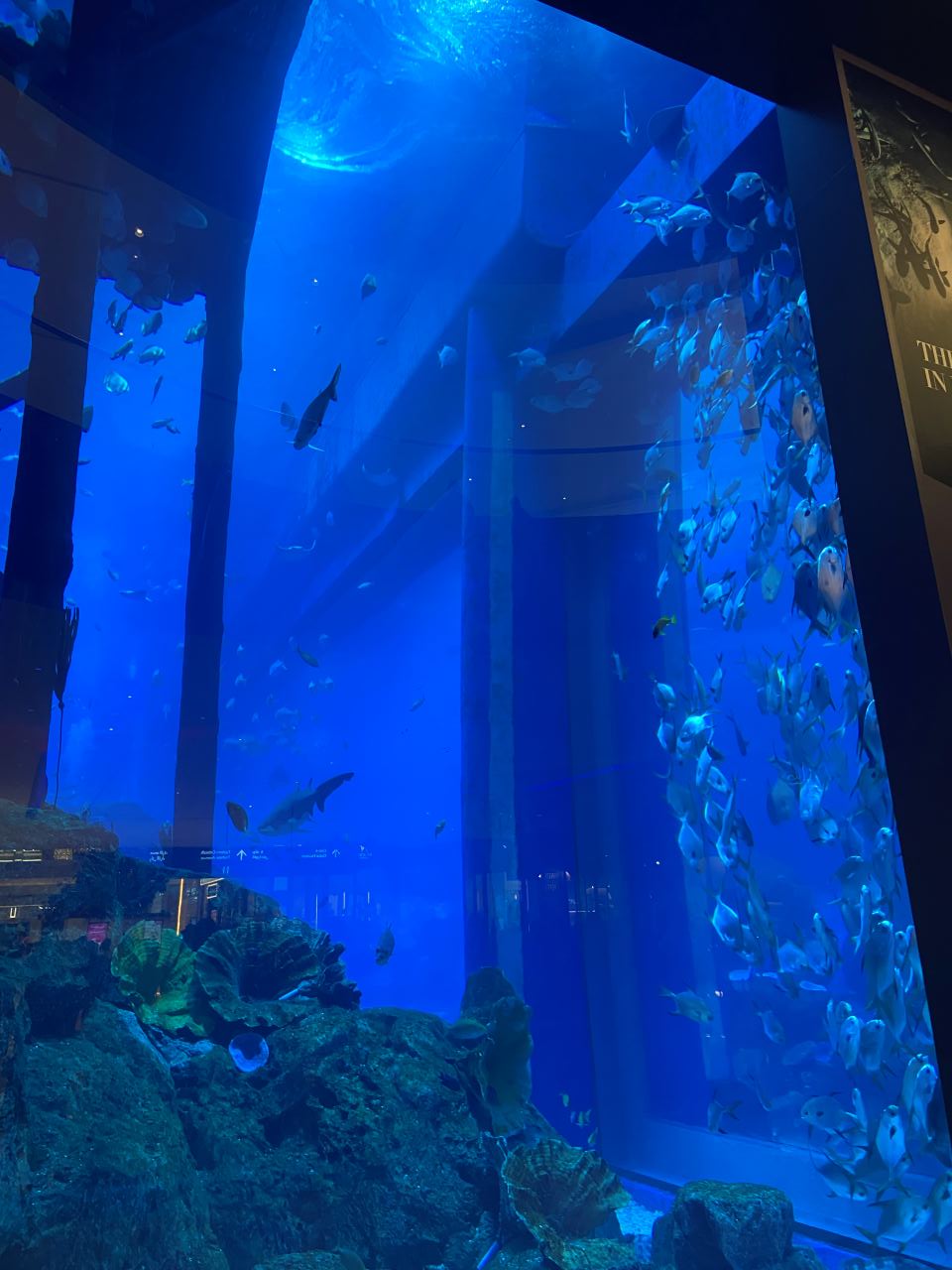 Gegen 17:00 verlassen wir den Strand, wir wollen heute Abend noch einmal mit einem Taxi in die Downtown von Dubai fahren. Unser Fahrer bringt uns wie gestern Abend in Parkhaus des Souk Al Bahar. Hier kann man viele Arabische Souvenirs in über 130 Geschäften kaufen. Sehr schön sind auch die 25 Restaurants und Cafes, wo man direkt an der Wasserpromenade den Burj Khalifa genießen kann. Um 18:40 sind wir Drei mit unserem Enkel in der Dubai Mall angekommen. Als erstes besuchen wir das Riesige Aquarium in der Mall. Unser kleiner Mann steht unheimlich auf Fische. Wir gehen weiter bis zum Wasserfall um hier ein paar Fotos zu machen. Danach drehen wir um und gehen durch die riesige Einkaufs-Mall mit Ihren über 1200 Geschäften. Ich habe es ja schon erwähnt, trotz meiner mehrmaligen Besuche in der Mall fehlt mir hier die Orientierung.