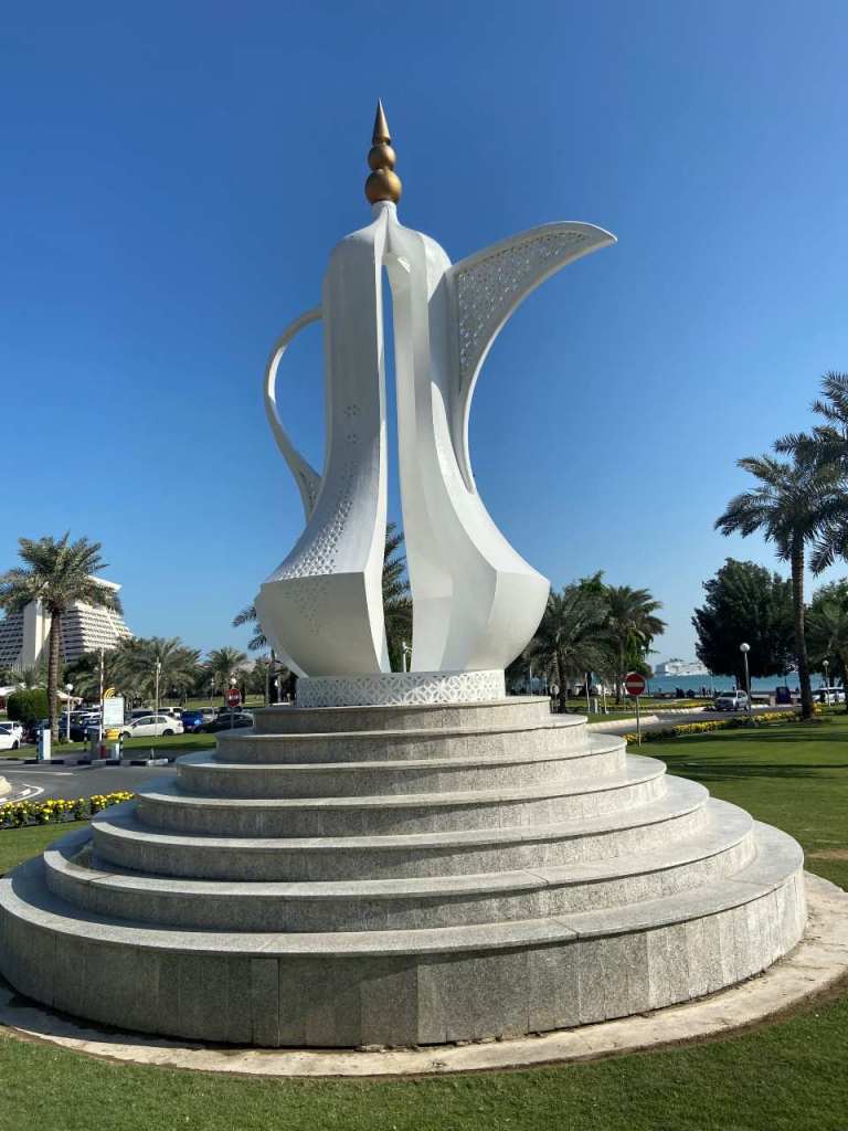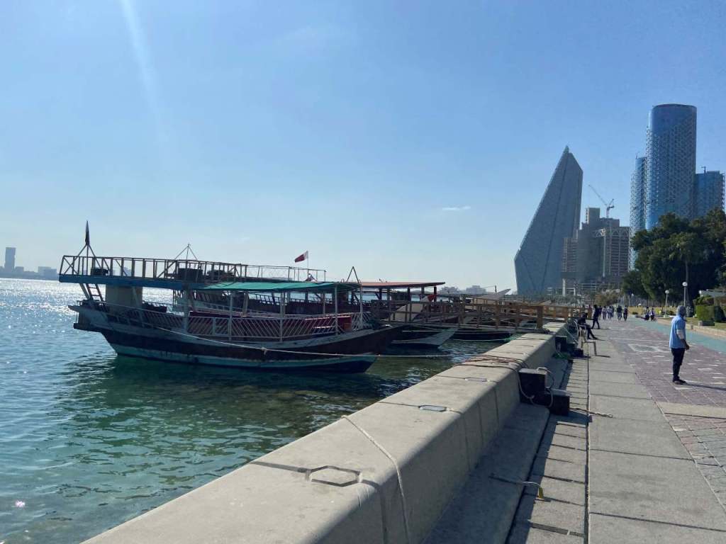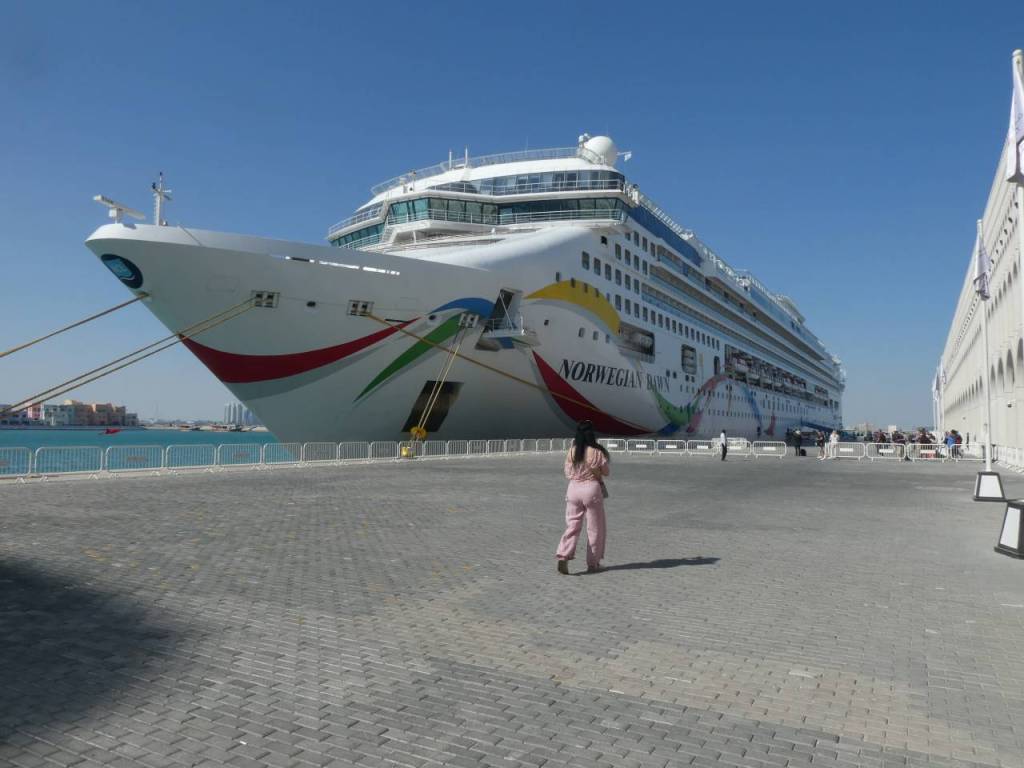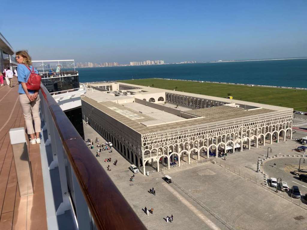 Wie schon erwähnt stehen wir mit unserem Schiff vor dem Kreuzfahrtterminal von Doha. Wir hatten versäumt irgendwelche Ausflüge bei MSC zu buchen, teilweise aber auch aus Gründen der hohen Preise. Vor der Reise haben wir ein paar Ausflüge bei MSC markiert, der Ausflug hier in Doha wäre eine Busfahrt an der Corniche (Uferstraße) zum Souq Waqif und im Anschluss eine Fahrt auf einer Dhau mit einem Barbecue bei einem Preis von über 130 Euro gewesen. Bei all unseren Kreuzfahrten in der Vergangenheit waren Ausflüge vom Schiff das A und O der jeweiligen Kreuzfahrt. Wir wollen auf dieser Reise unsere Ausflüge mit dem Taxi bestreiten.