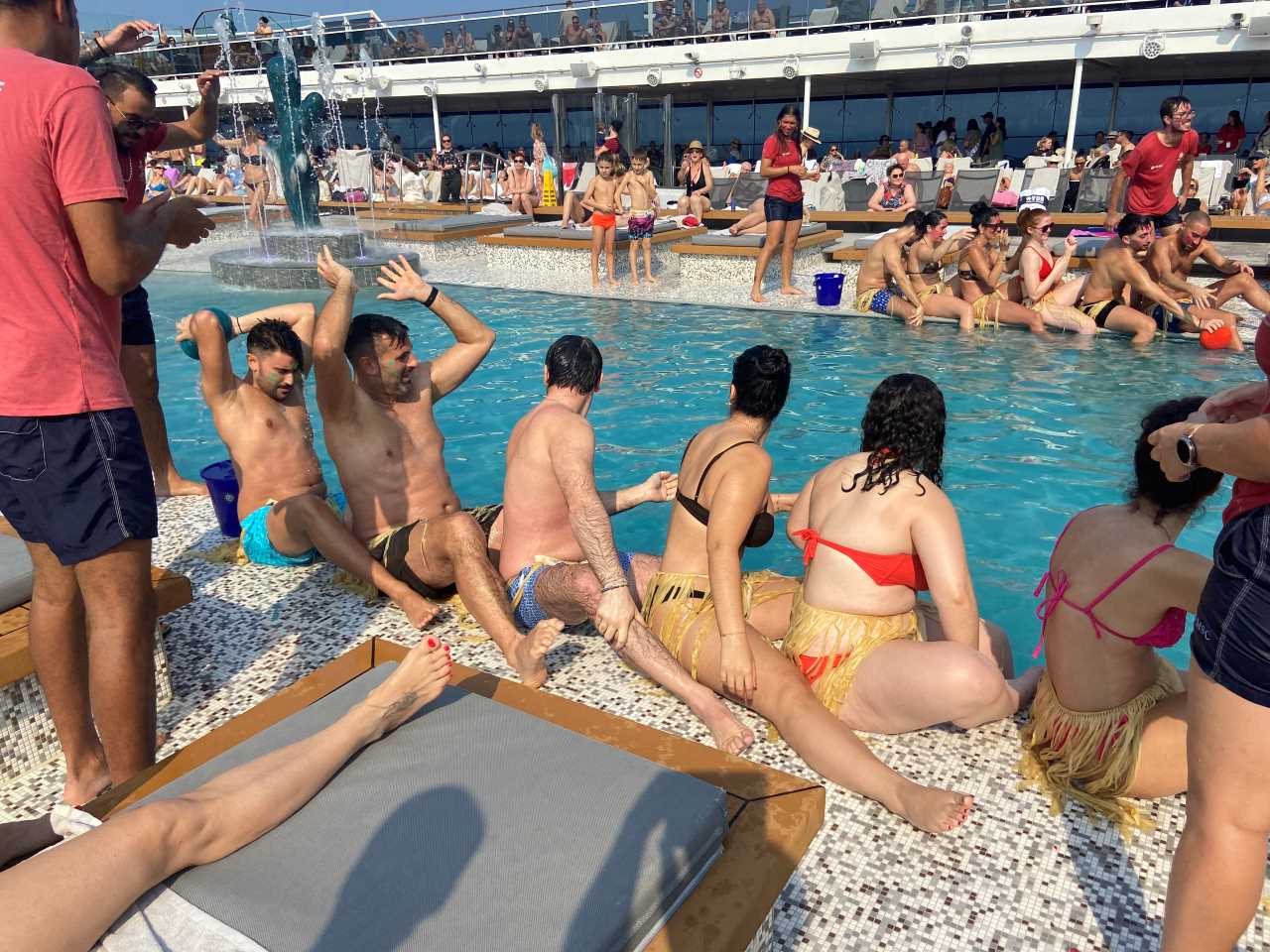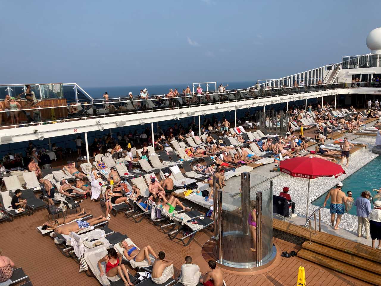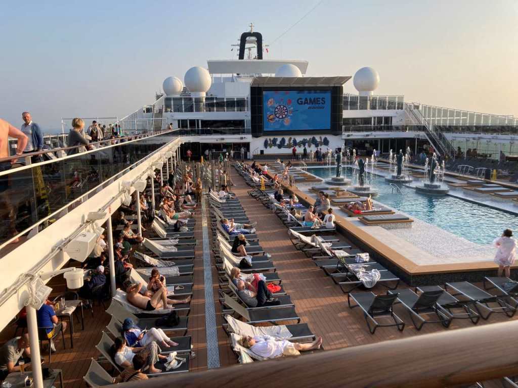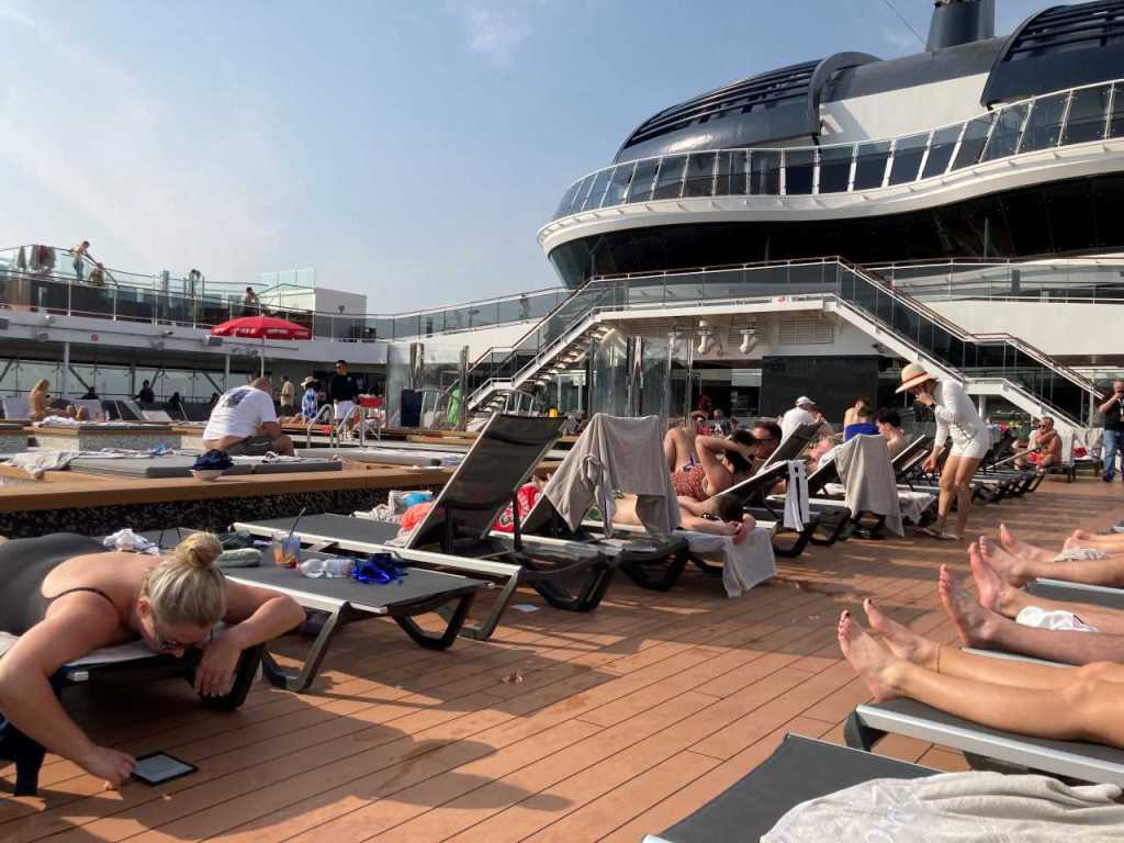 Gegen 11:00 treffen wir uns gemeinsam am Pooldeck, auf Grund der Landausflüge ist das Pooldeck nur zur Hälfte belegt.