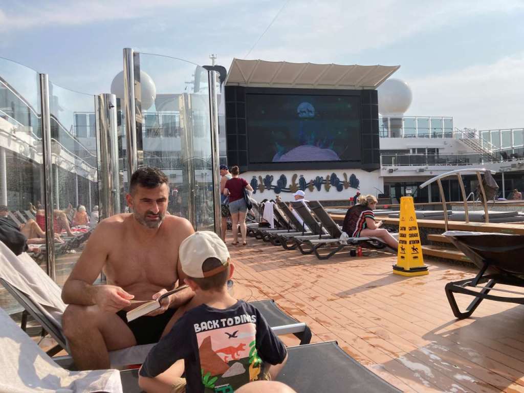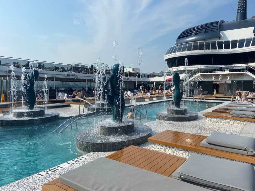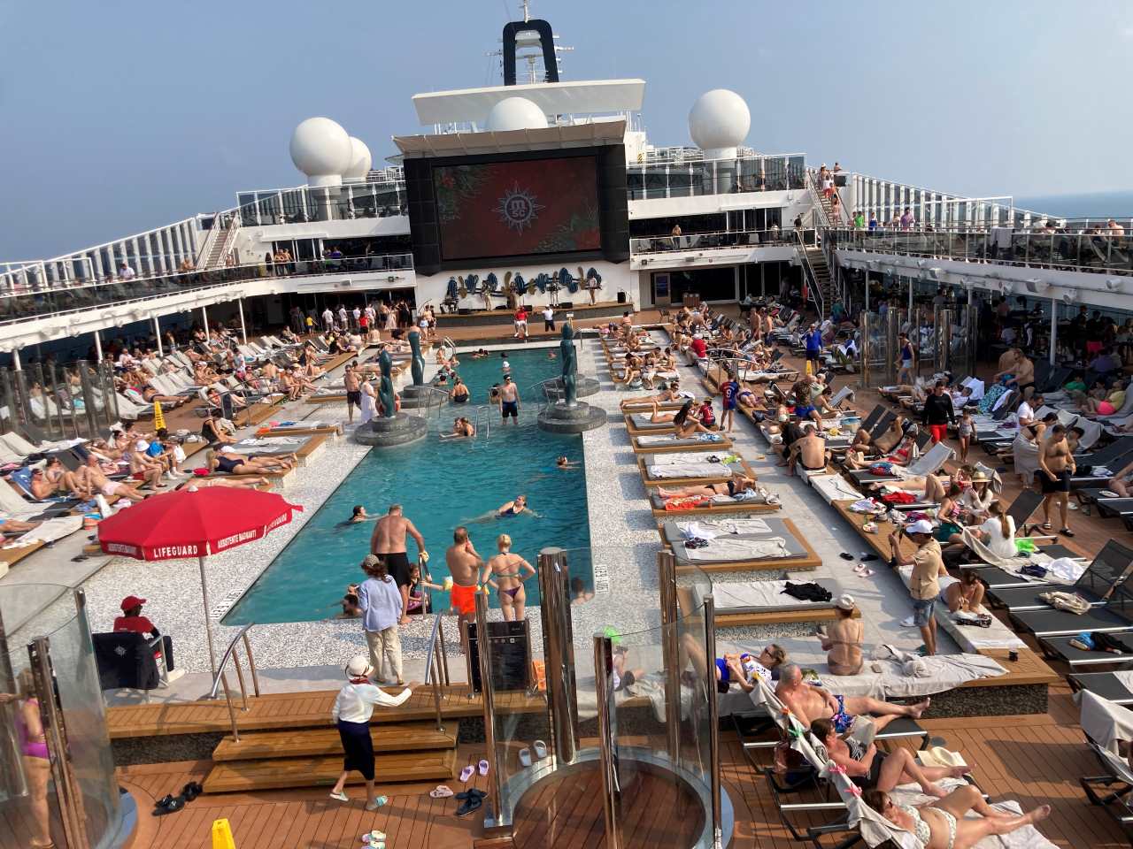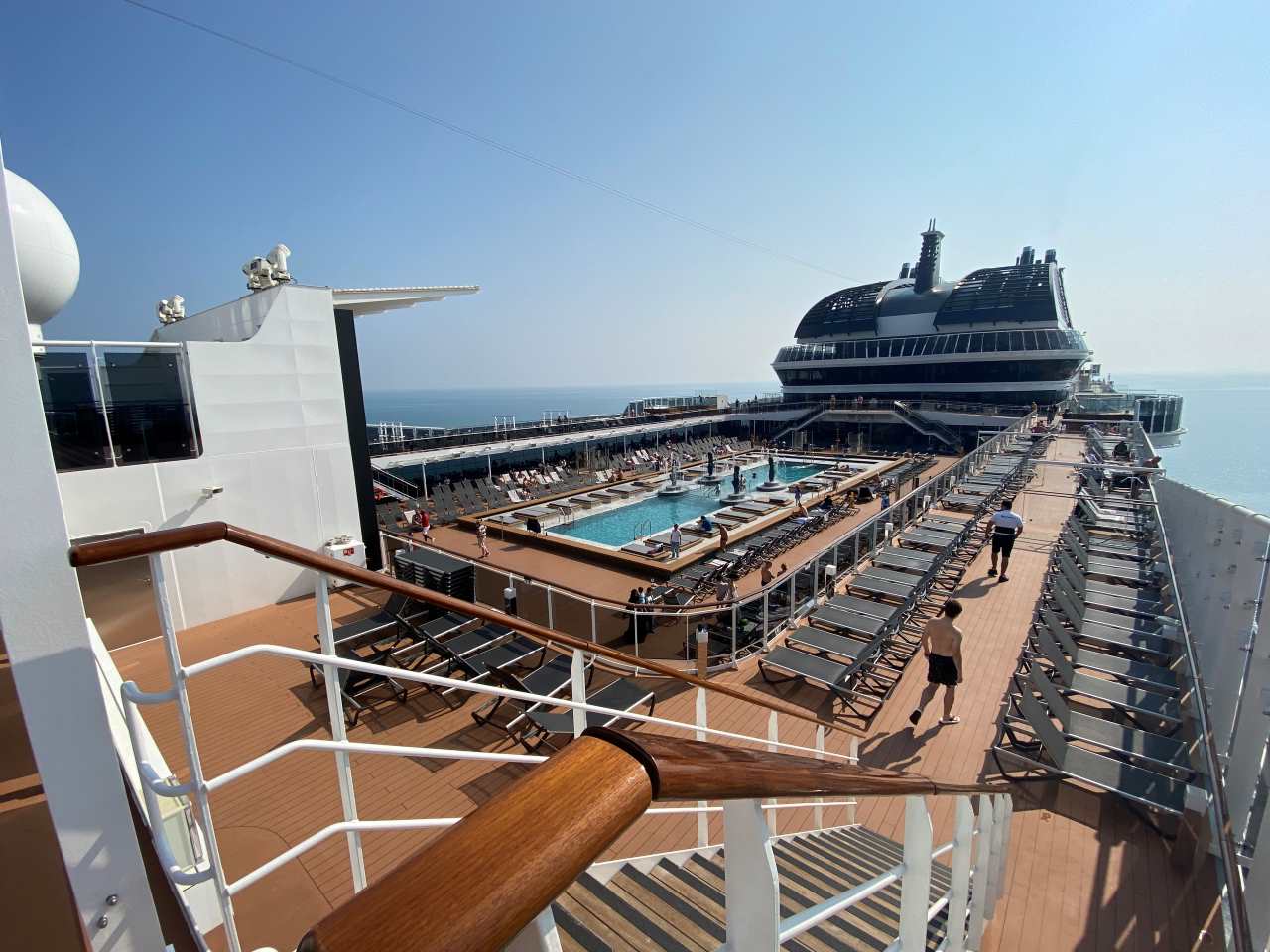 Gegen 11:00 treffen wir uns gemeinsam am Pooldeck, auf Grund der Landausflüge ist das Pooldeck nur zur Hälfte belegt.