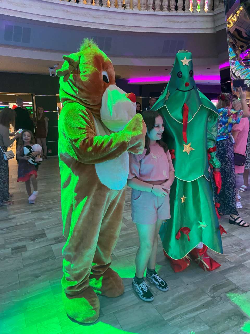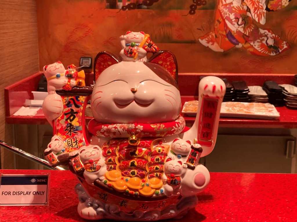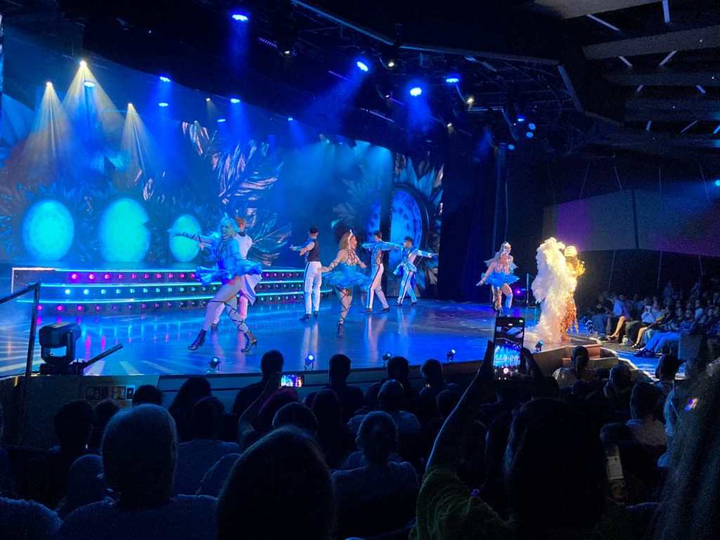 Wie jeden Abend machen wir im Anschluss einen Spaziergang über die Galeria auf Deck 6/7 . Heute Abend kommen vom Kidsclub ein paar Figuren darunter das Maskottchen der MSC Euribia, ein Seestern auf die Galeria. Das möchte unser Kleiner natürlich sehen. Anschließend ist im Delphi-Theater eine Zauber-Show, wovon unser Jüngster hellauf begeistert ist.