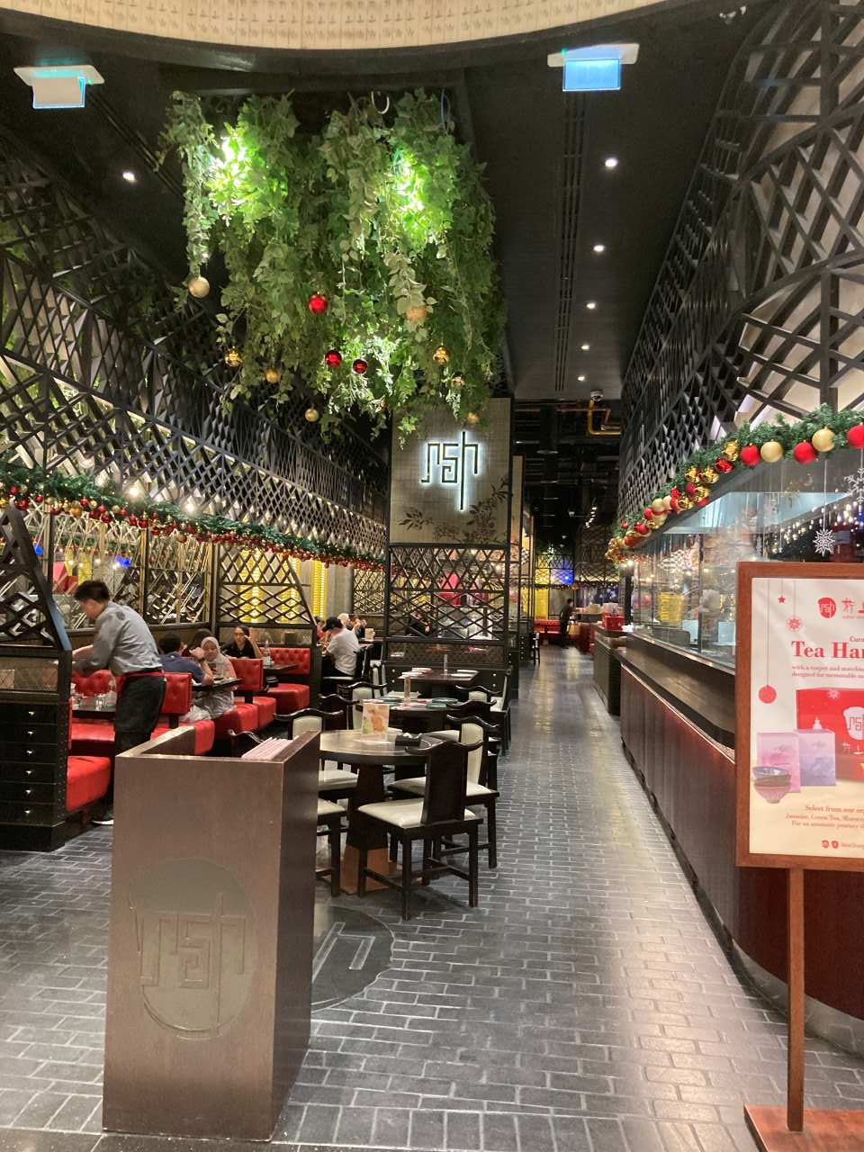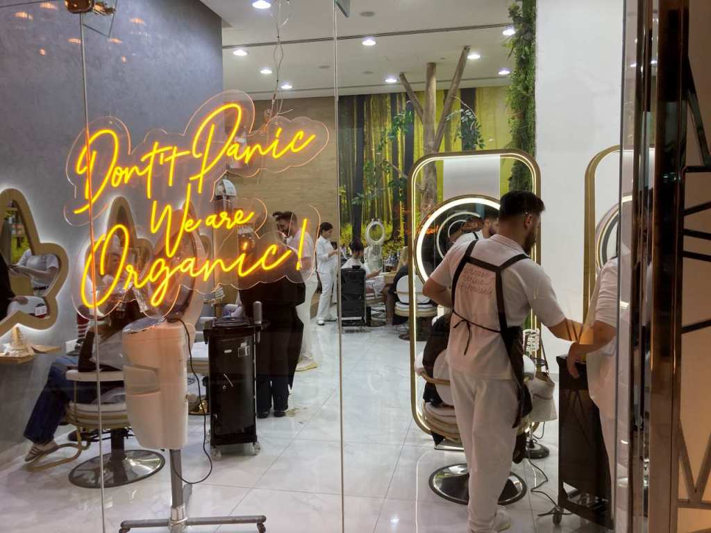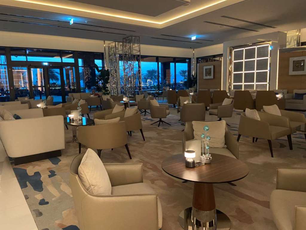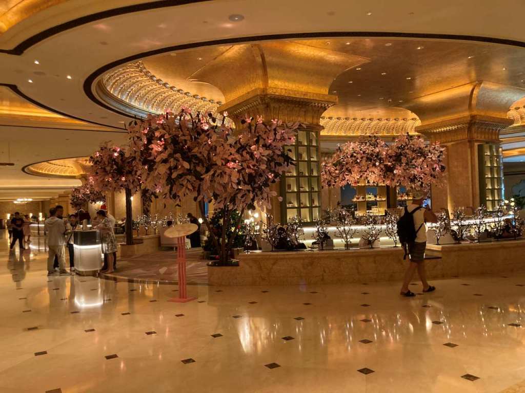 Um 17:45 gehen wir mit unserer Tochter über die riesige Lobby zum Abendessen in unser Restaurant Levantera. Beim Friseur der am Ende der Lobby seinen Salon hat, sind wie meistens alle Stühle besetzt.