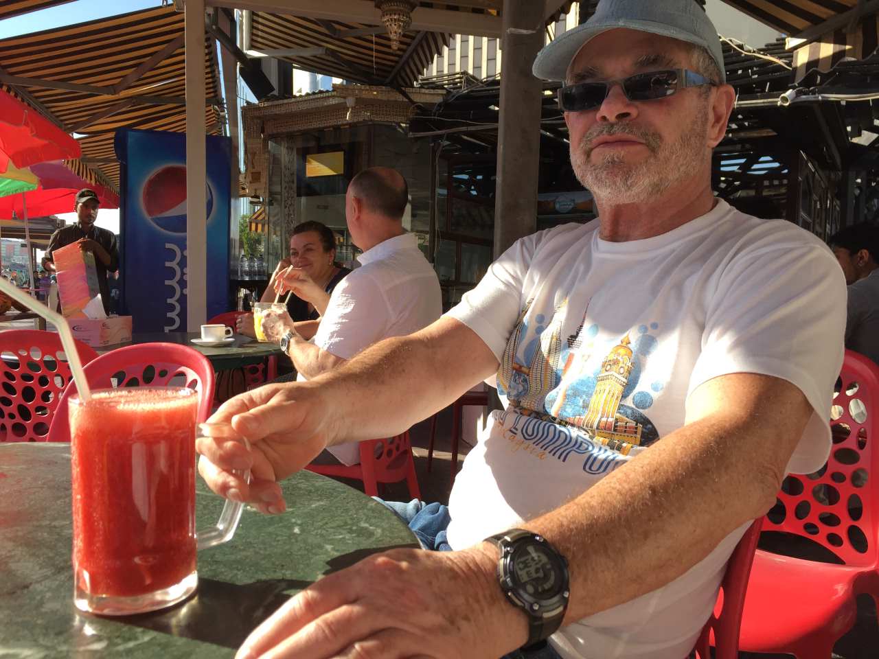 Wie wir später einmal feststellen konnten, bekommt man nach dem Trinken vom Strawberry Daiquiri eine rot gefärbte Zunge.