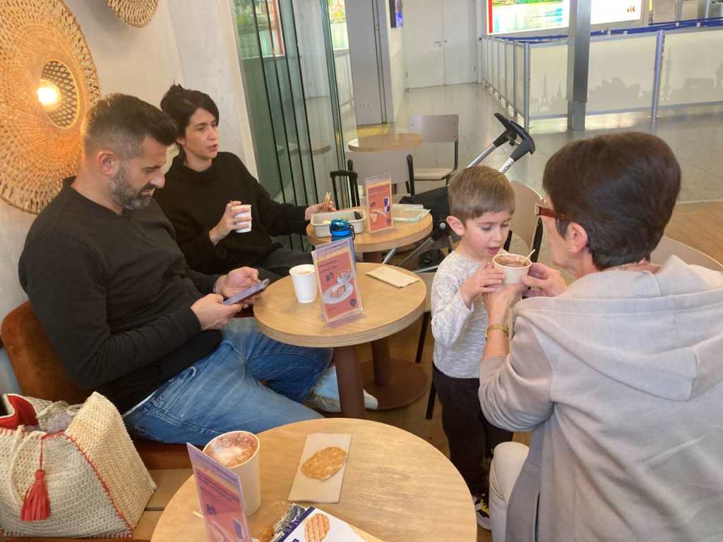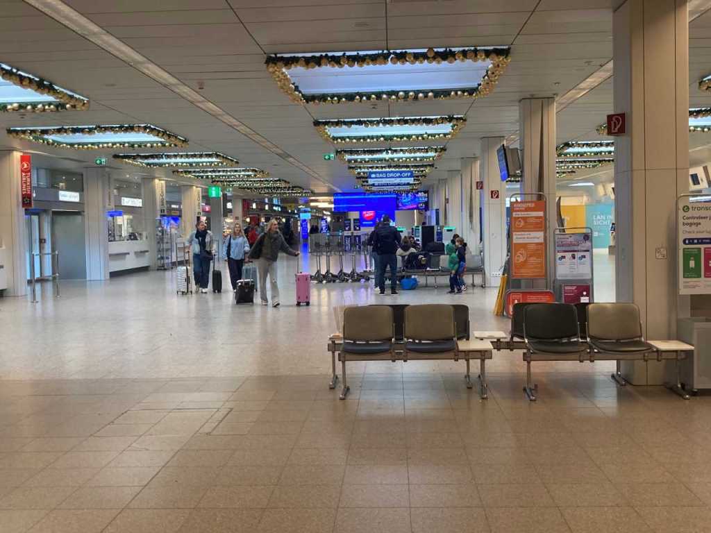 Unser Flug FZ1450 geht um 14:05 mit einer Boeing 737 max zum DXB Flughafen in Dubai. Auf Grund des angenehmen Verkehrsaufkommen und der höheren Fahr-Geschwindigkeit meines Schwiegersohnes haben wir jetzt ein großes Zeit-Fenster bis zu unserem Abflug vor uns. Wir setzen uns in ein kleines Cafe in der Ankunftshalle und bestellen uns etwas zum Essen und Trinken.