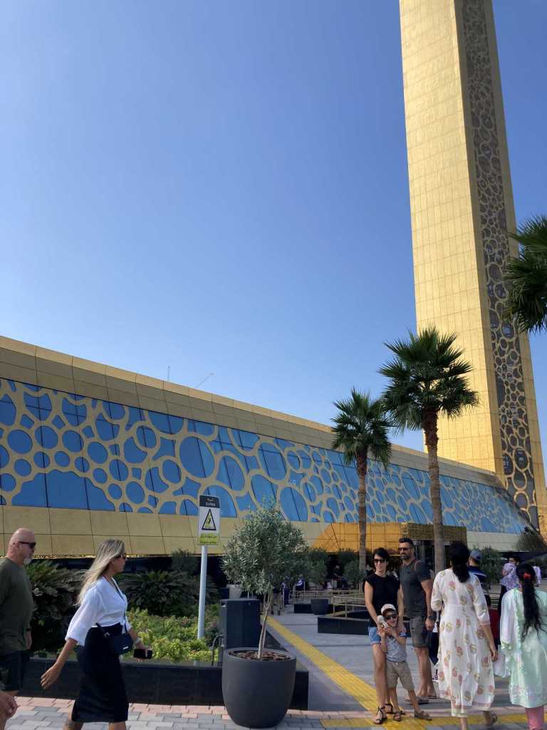 Für heute Vormittag ist der Besuch von „The Frame“ vorgesehen. Der „The Frame“ ist ein überdimensionaler Bilderahmen mit 150 Metern Höhe der mit 24 Karätigem Gold verkleidet ist. Als wir im Jahr 2019 das erste Mal Urlaub in Ras Al Khaimah machen und einen Ausflug nach Dubai machten, konnten wir erstmals den riesigen Bilderrahmen sehen.
