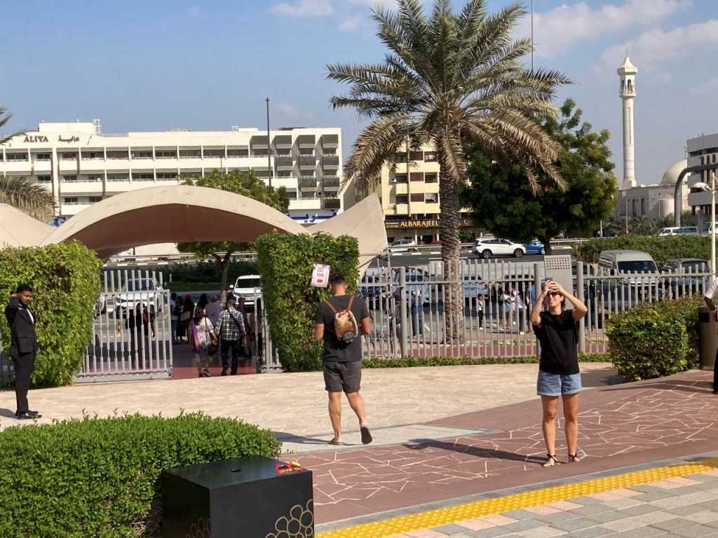 Kurz nach 12:00 treffen wir uns vor dem Hoteleingang. Mein Schwiegersohn hat über eine Uber-App für uns ein Taxi bestellt, das laut der Handy-App in 15 Minuten da sein soll. Dieses Mal haben wir ein normales großes Taxi bestellt, das uns die etwa 5 Kilometer bis zum Dubai-Creek fährt.