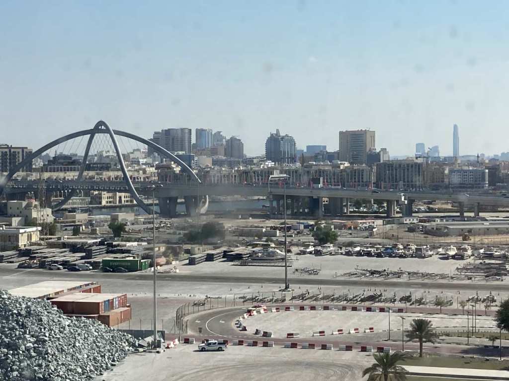 Wir fliegen mit der Fluggesellschaft Fly-Dubai von Salzburg nach Dubai . Geplant hatten wir weitere 1,5 Tage in einem Hotel in Dubai in der Altstadt Bur Dubai zu verbringen. Der Stadtteil Bur Dubai war uns noch aus dem Jahr 2020 bekannt wo wir ein paar Tage im Stadthotel Mövenpick***** in Bur Dubai verbrachten. Es hatte uns damals hier sehr gefallen, die zentrale Lage nahe der Downtown mit dem Burj Khalifa und der Dubai Mall und seinen Attraktionen. Am Samstag Nachmittag werden wir dann auf der MSC Euribia einschiffen. Das riesige Schiff ist gerade auf einer Kreuzfahrt-Route im Arabischen Golf (Persischer Golf) unterwegs. Von Dubai geht es zuerst nach Doha der Hauptstadt des Emirates Katar. Von hier fahren wir weiter zum Königreich Bahrain. Am dritten Seetag legen wir in Abu Dhabi an. In Folge des nächsten Tages besuchen wir die Insel Sir Bani Yas. Und als letzte Station legen wir wieder in Dubai an.