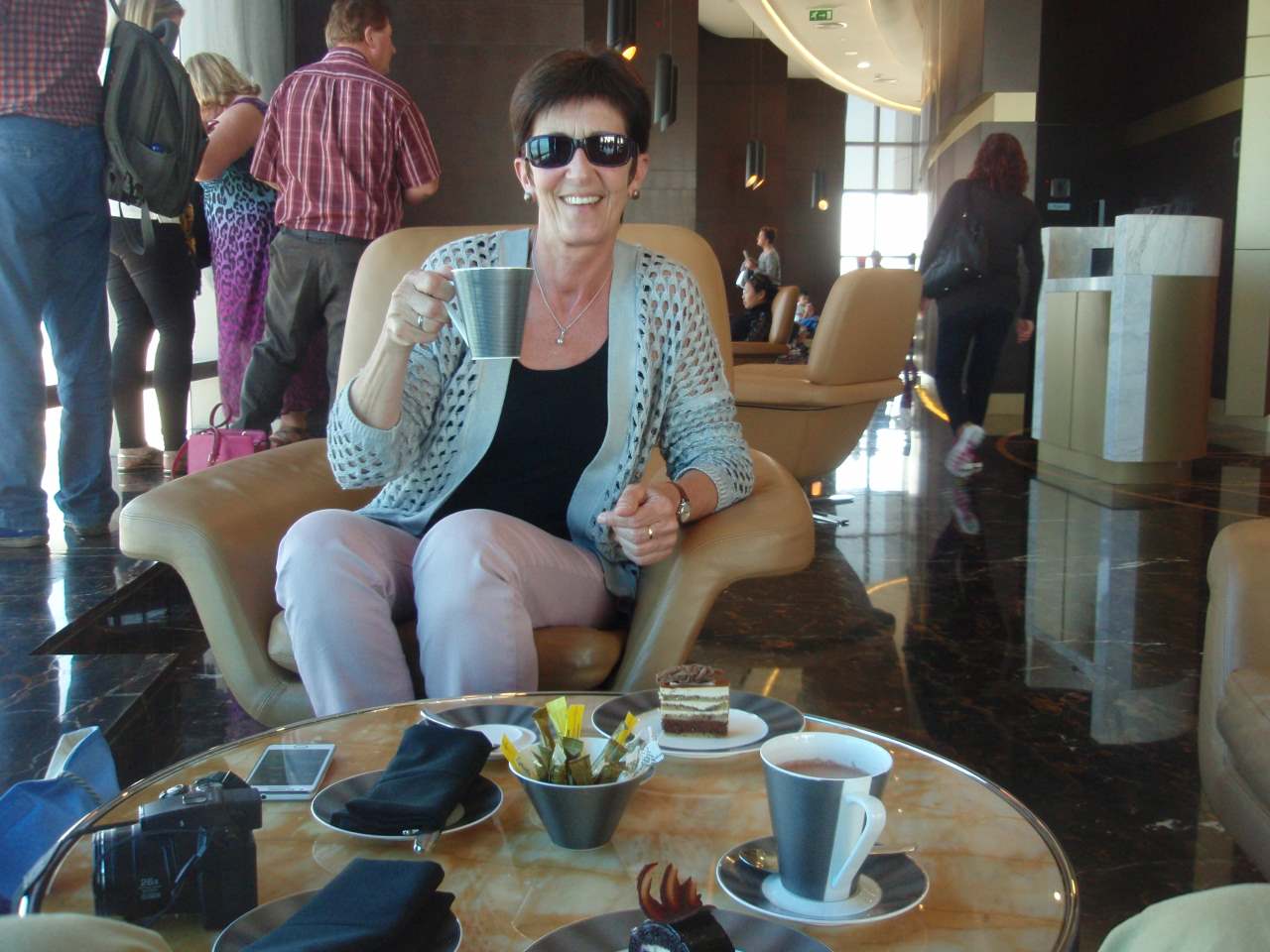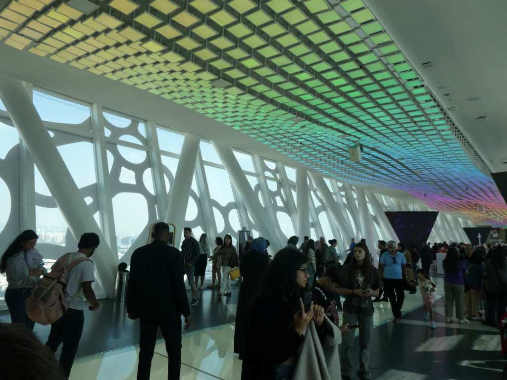 Ich gehörte nicht dazu. Mir wäre der Burj Khalifa viel lieber gewesen, mit seinen zwei Plattformen. Eine Plattform ist wie ein Balkon, und die zweite Plattform ist geschlossen ganz hinter Glas. Natürlich kann der Preis eine Rolle spielen der Eintritt im Burj kostet mehr als das Doppelte als beim Sky View Observatory