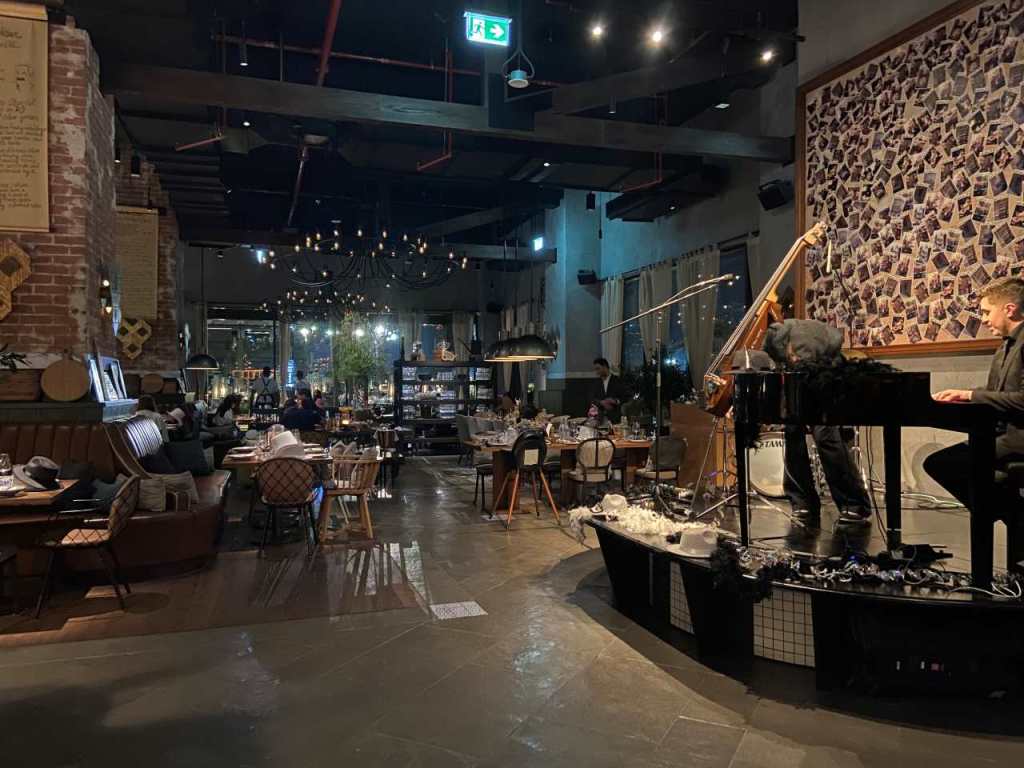 Wir waren bis kurz vor Mitternacht mit diesem köstlichen Essen beschäftigt, zu unserer Unterhaltung spielte eine Jazz-Band, während draußen auf der Terrasse die Pop-Gruppe tobte. Wenige Minuten vor 24:00 verlassen wir das Cucina-Restaurant und warten auf die ersten Sylvesterknaller.