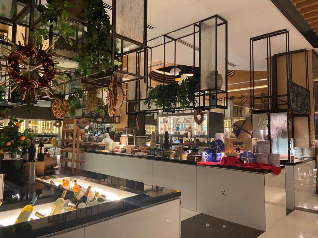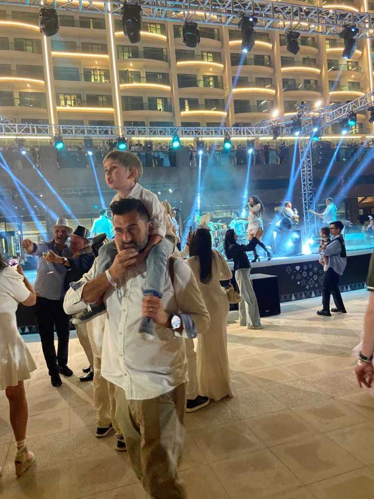 Ein Handicap gab es allerdings, die Hotelleitung hat für alle Hotelgäste ein Sylvester-Gala-Menü inkludiert für sage und schreibe 1950 AED, das sind weit über 500 Euro je Person. Wir konnten auf Entgegenkommen eines Managers im Hotel zugehörigen Cucina-Restaurant ein 5 Gänge Menü für umgerechnet 437 Euro pro Person buchen. Unser kleiner Enkel war im Gesamtpreis für die 4 Erwachsene enthalten.