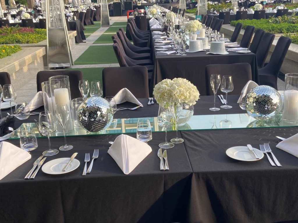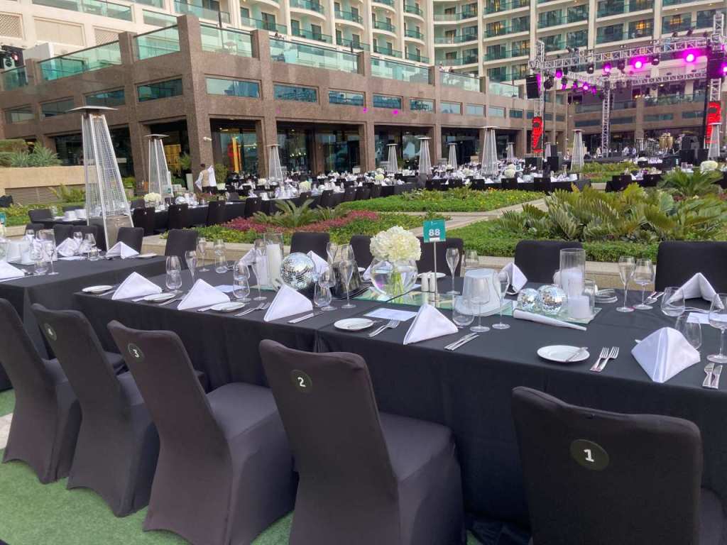 Nach dem Feuerwerk dürfen wir auch auf die Terrasse gehen, wo das Gala-Menü stattgefunden hat, die Security gibt den Durchgang frei. So stehen wir eine Weile auf der Tanzfläche, wo einige Gäste Tanzen. Man sieht Gäste die Smoking tragen und die Damen haben Abendkleider an, die sie von zu Hause mitgebracht haben. Der Friseur der einen eigenen Salon im Hotel hat, hatte heute den ganzen Tag Hochkonjunktur.