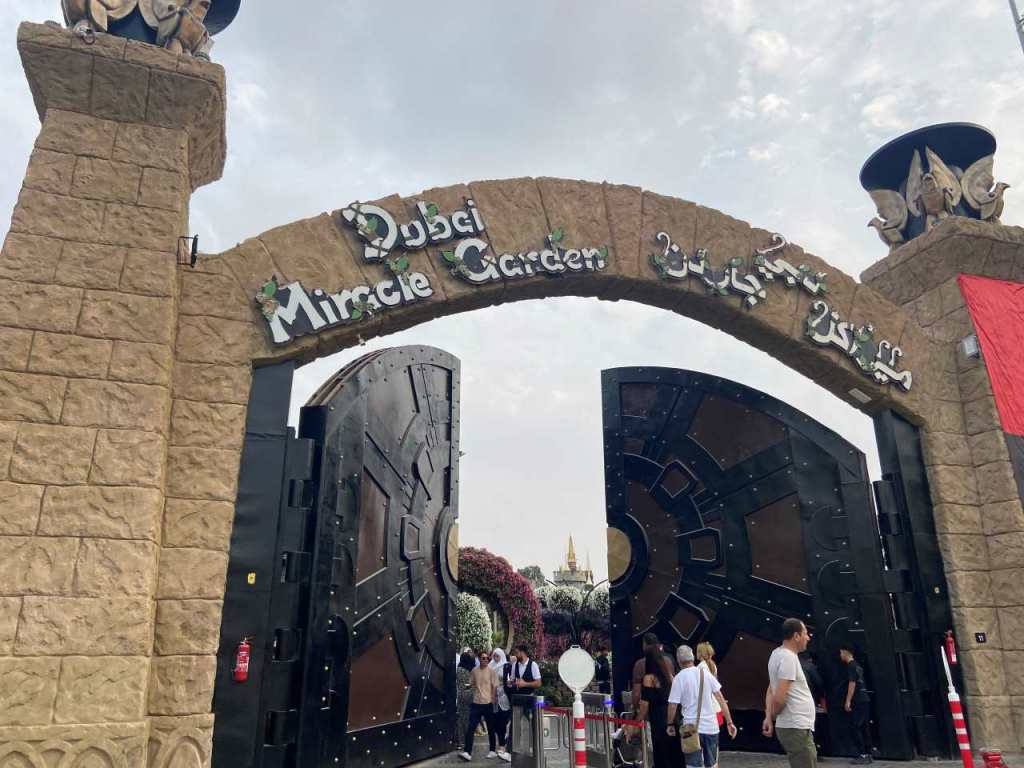 Der Weg bis zum Miracle Garden ist relativ lang, ich hab es mal ausgemessen etwa 22 Kilometer, das ist wegen dem starken Verkehr hier in Dubai sehr viel. Wir brauchen wegen dem Rush Hour der jetzt herrscht eine gute Dreiviertel Stunde bis wir den Park erreicht haben. Unser Fahrer lässt uns an einem Nebeneingang aussteigen.